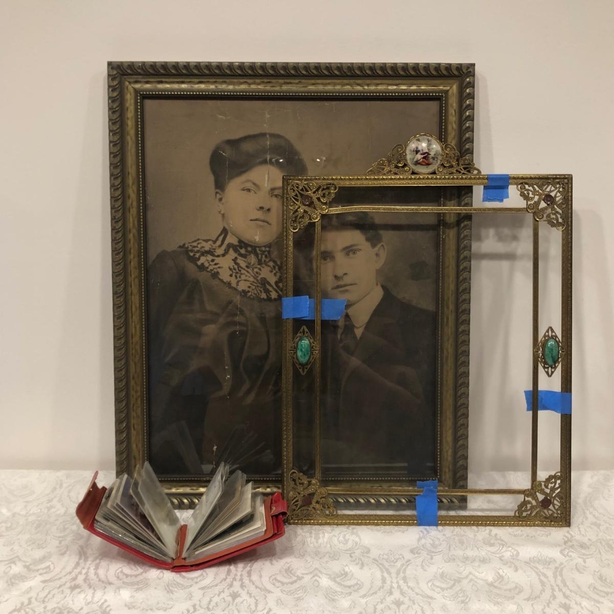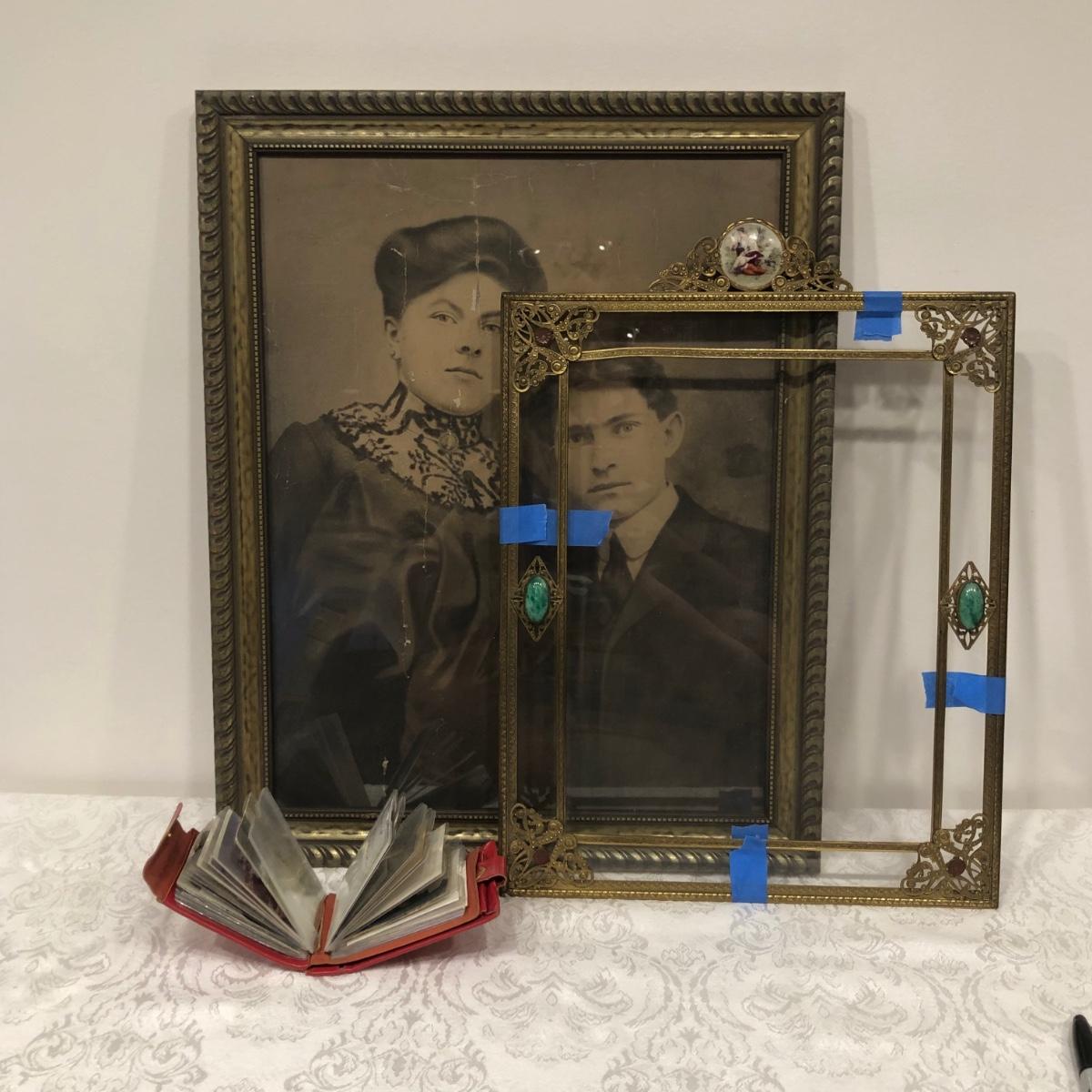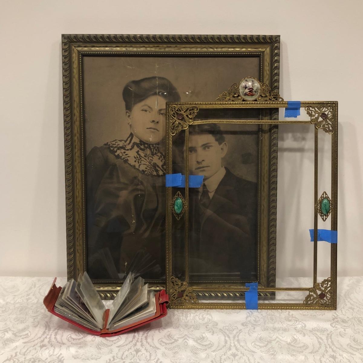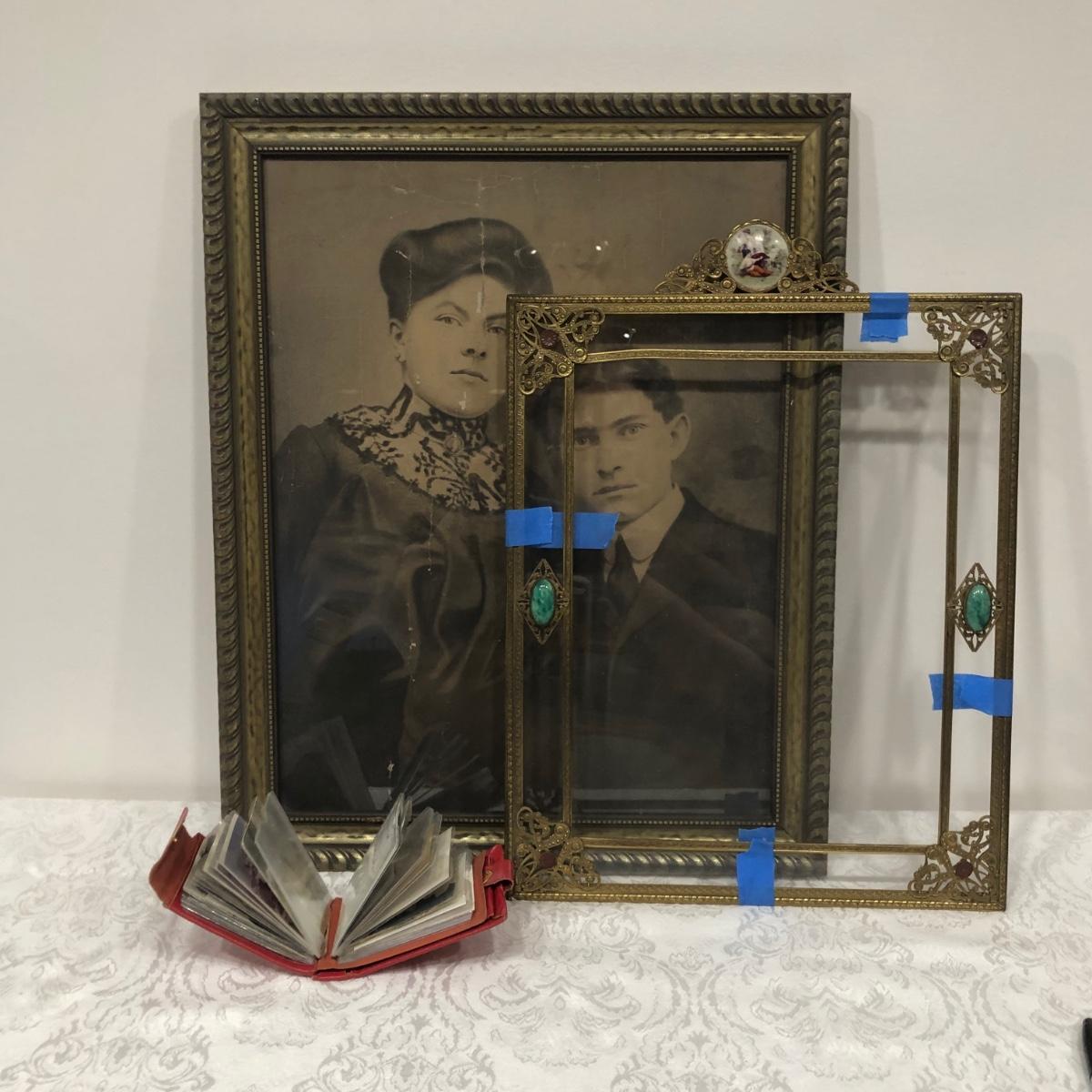 LOT 167M: Antique Mirror, Framed Photo & Vintage Wallet w/ Photos & Ephemera