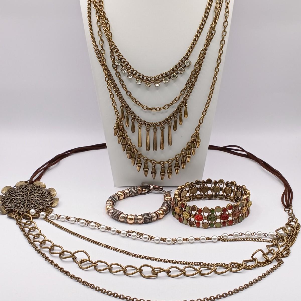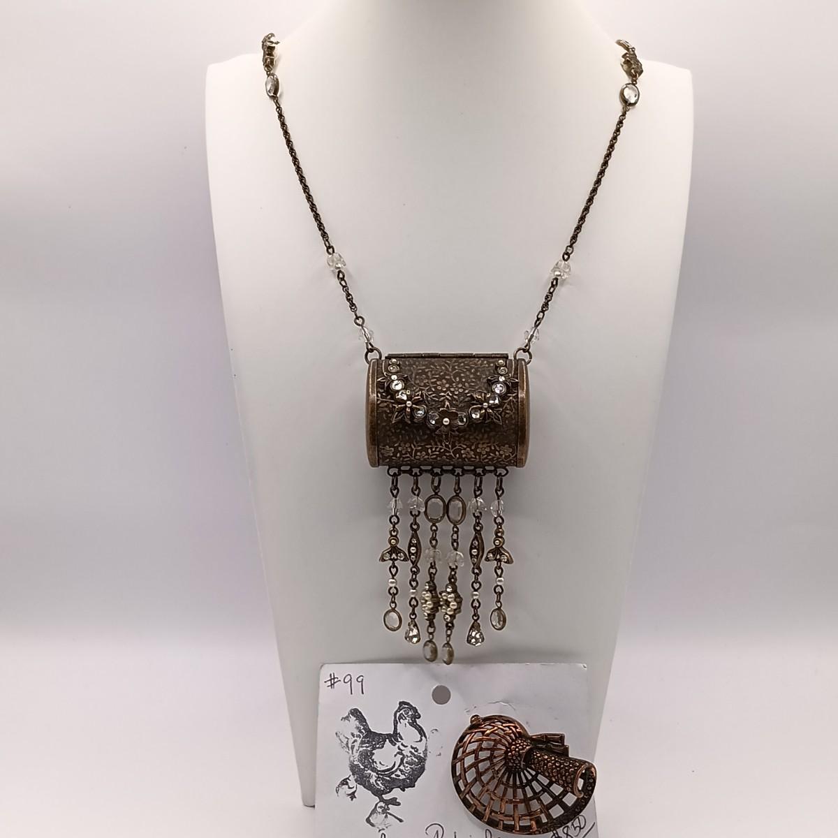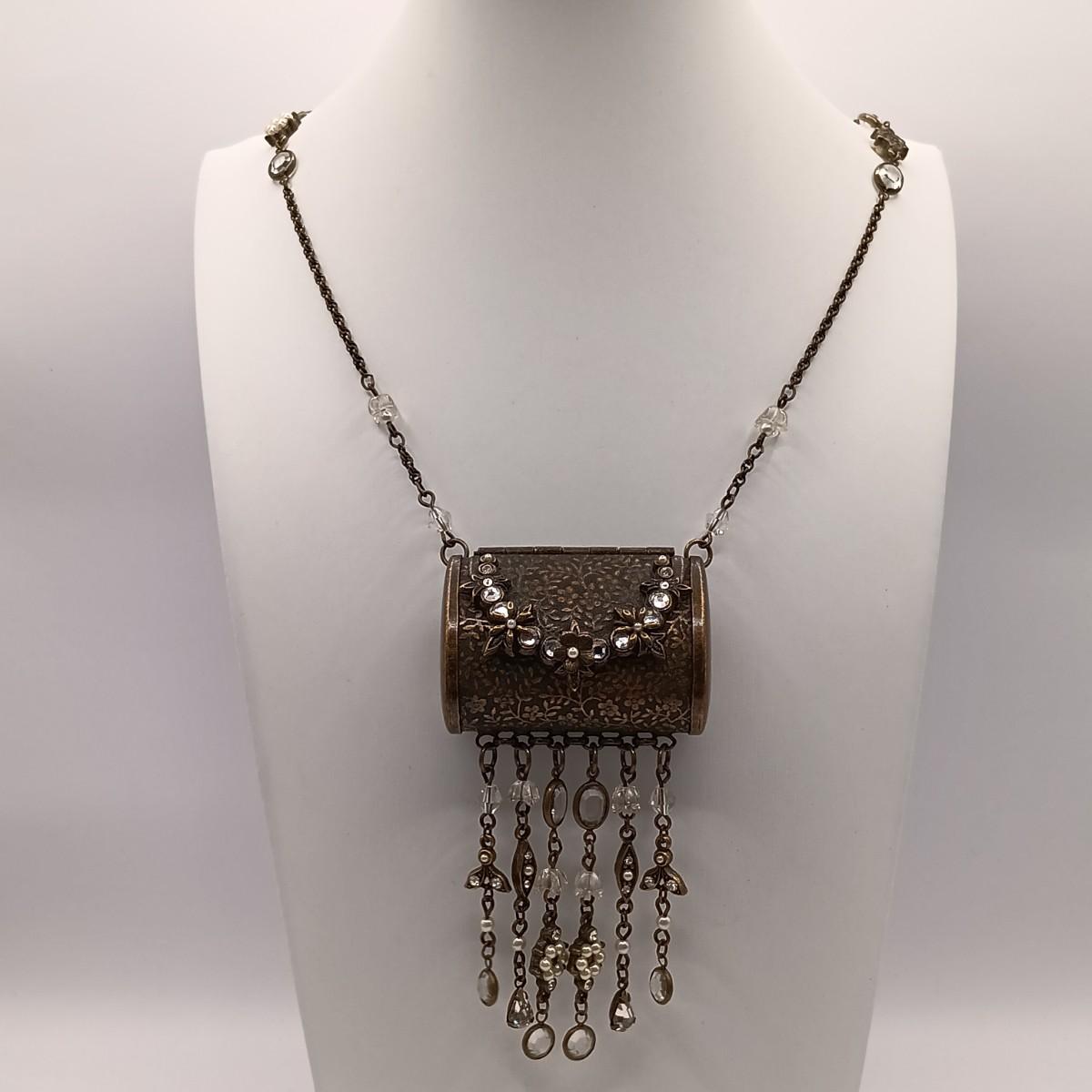 LOT 168: Sweet Romance Purse Locket Necklace, Copper Rebaj Pin, Vintage Door Knocker Necklace & More