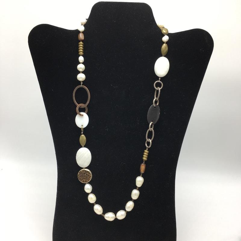Lot 168 - Pearl, Brass & Brown Lip Shell Necklace & More