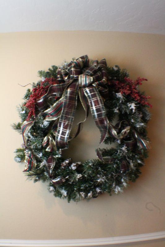 LOT #168: Large Christmas Wreath Plaid Bow Feature