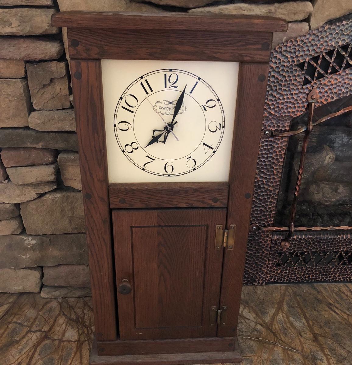 Clock measures 6” deep x 13.5” wide x 31.5” tall.