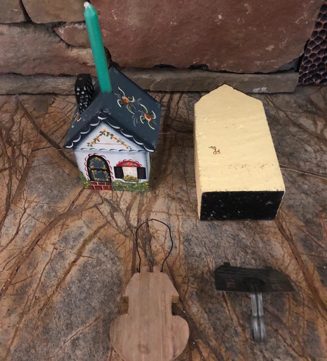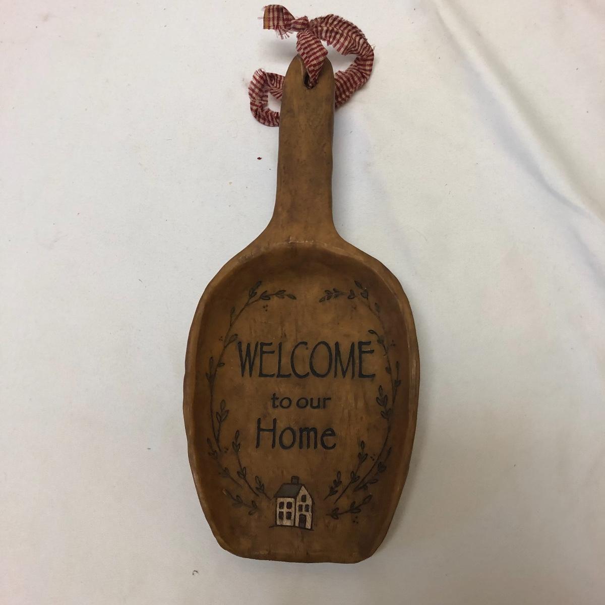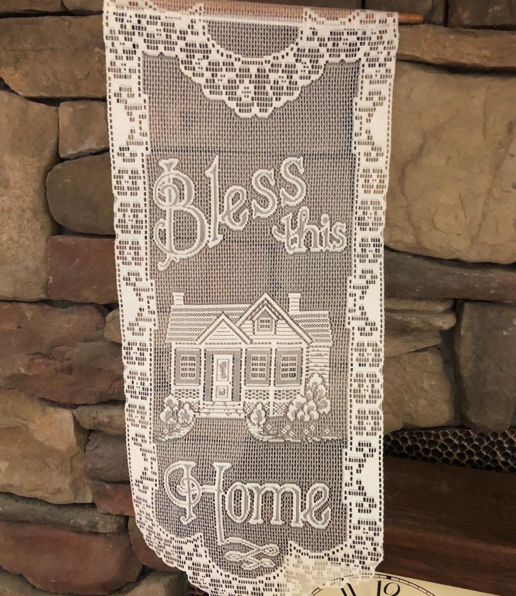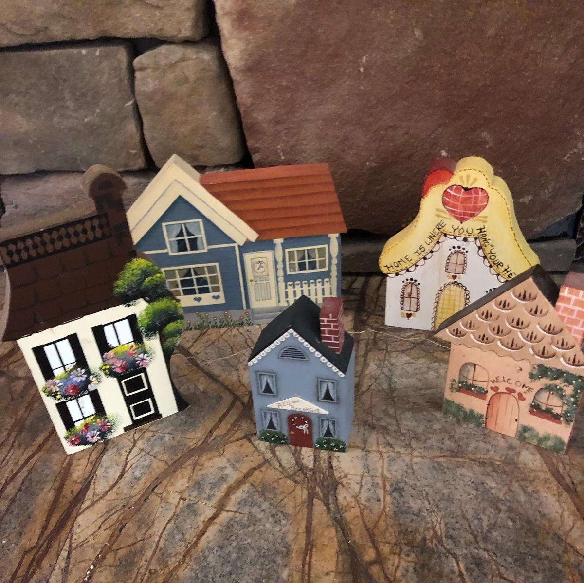 Our home is where our heart is and this assortment of decor is all about celebrating it! This lot includes a number of wood pieces that include a decorative wood painted toolbox, small houses, a tray with a cross-stitch under glass, faux stackable books, a battery operated clock which works and more. Also included is an attractive small wreath, lace hanging piece, lace and cross-stitch doily, small pillow, larger weighted pillow and more. The last image shows a wooden spoon added to this lot that is not in the image showing everything.