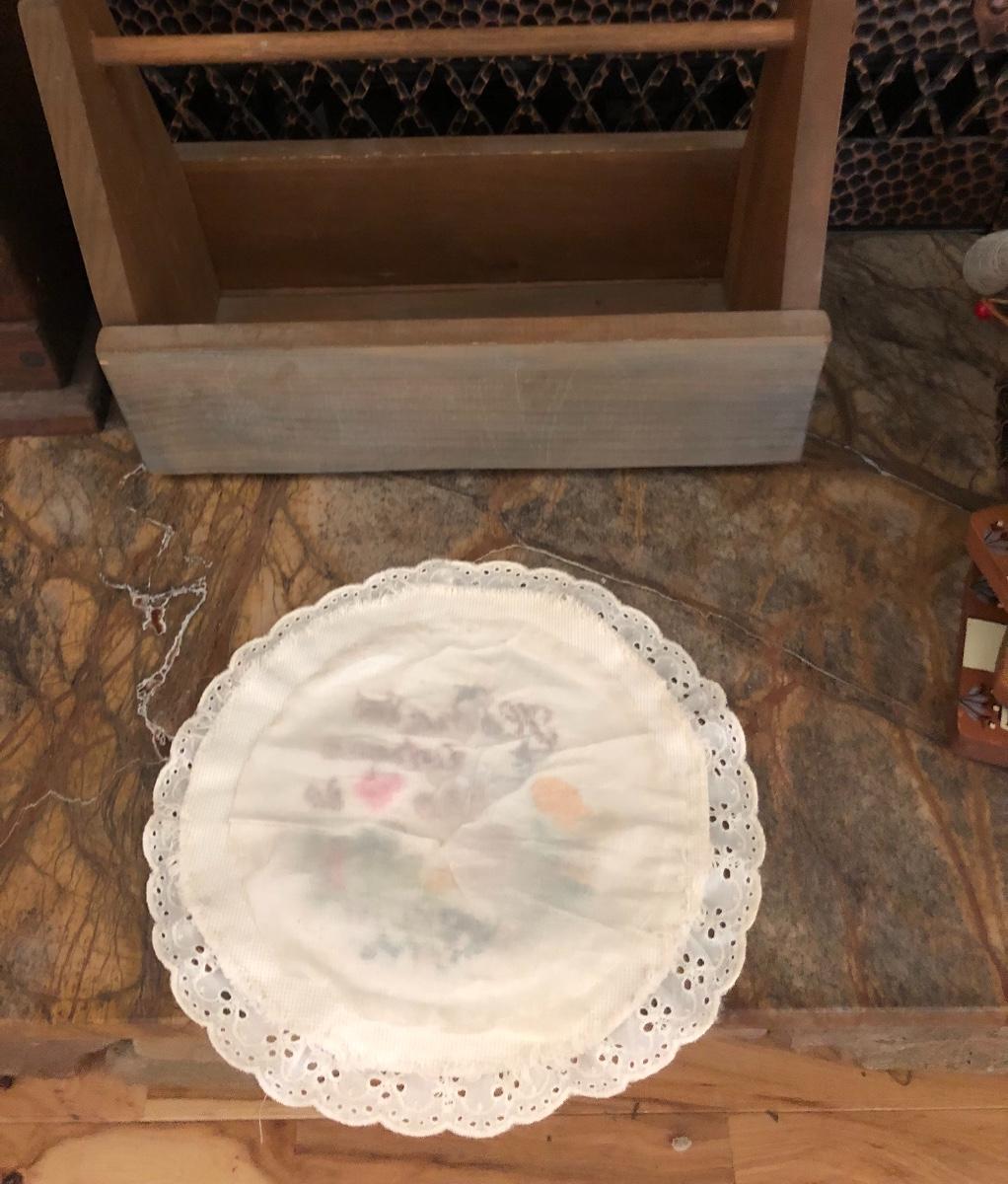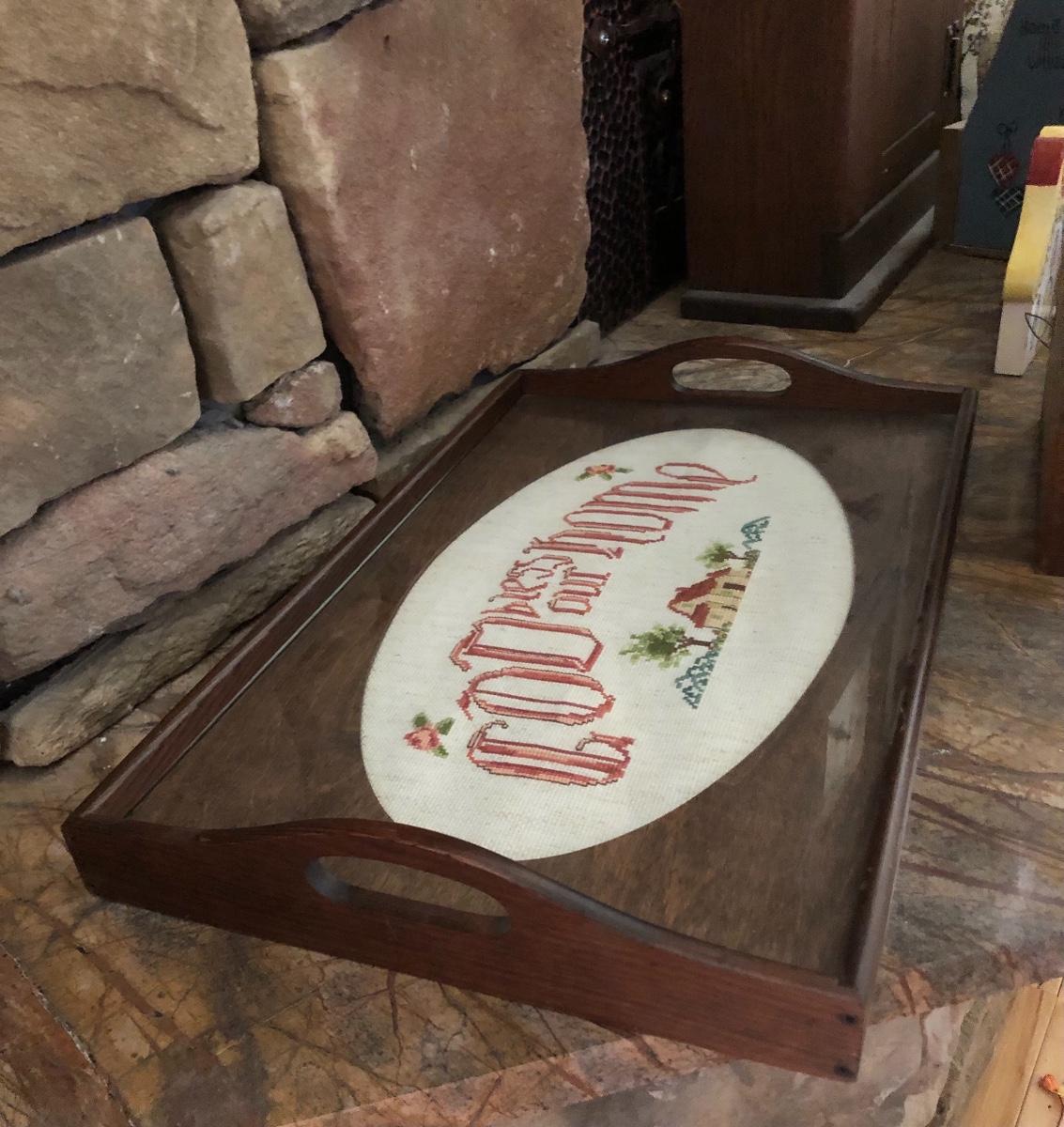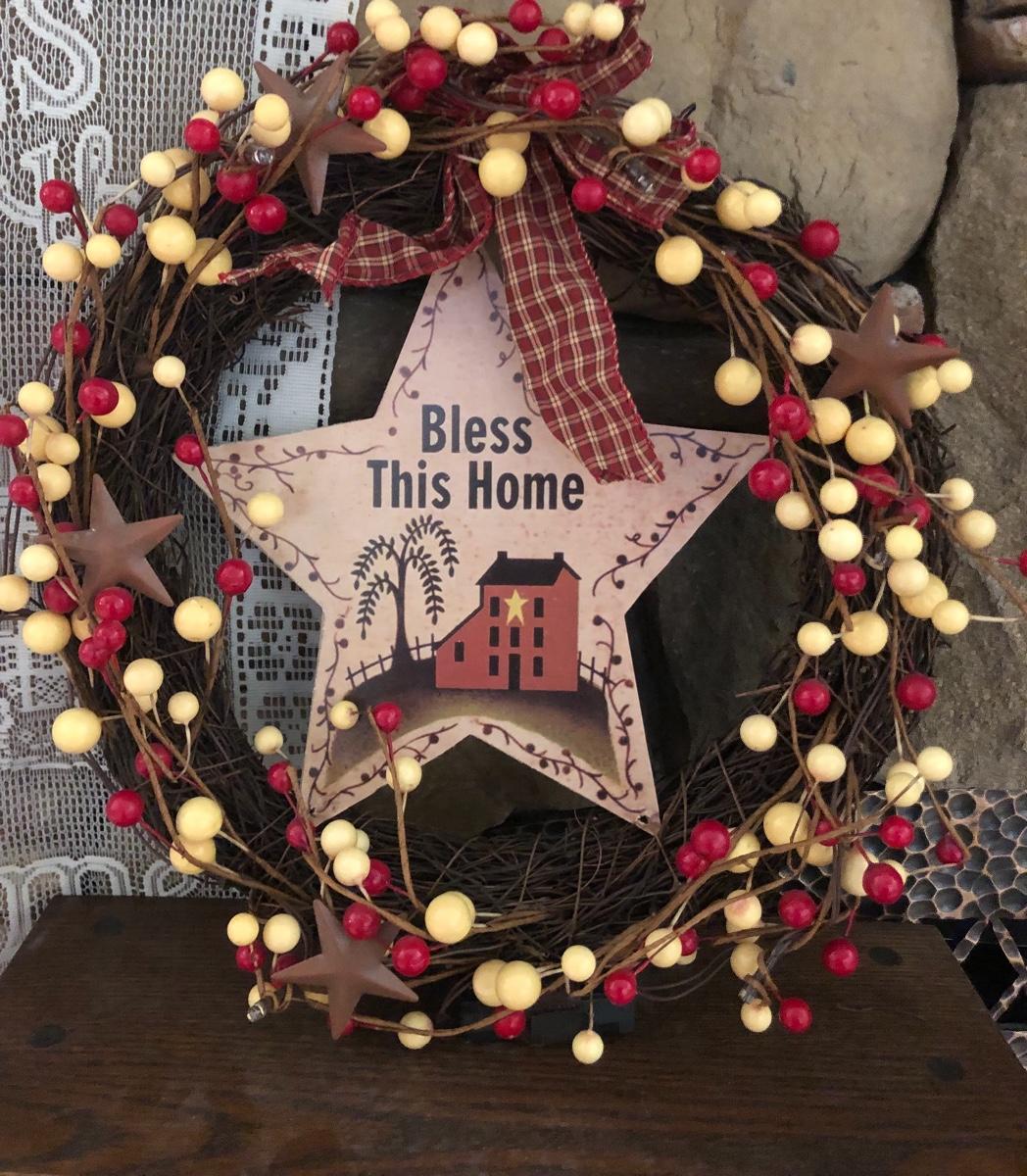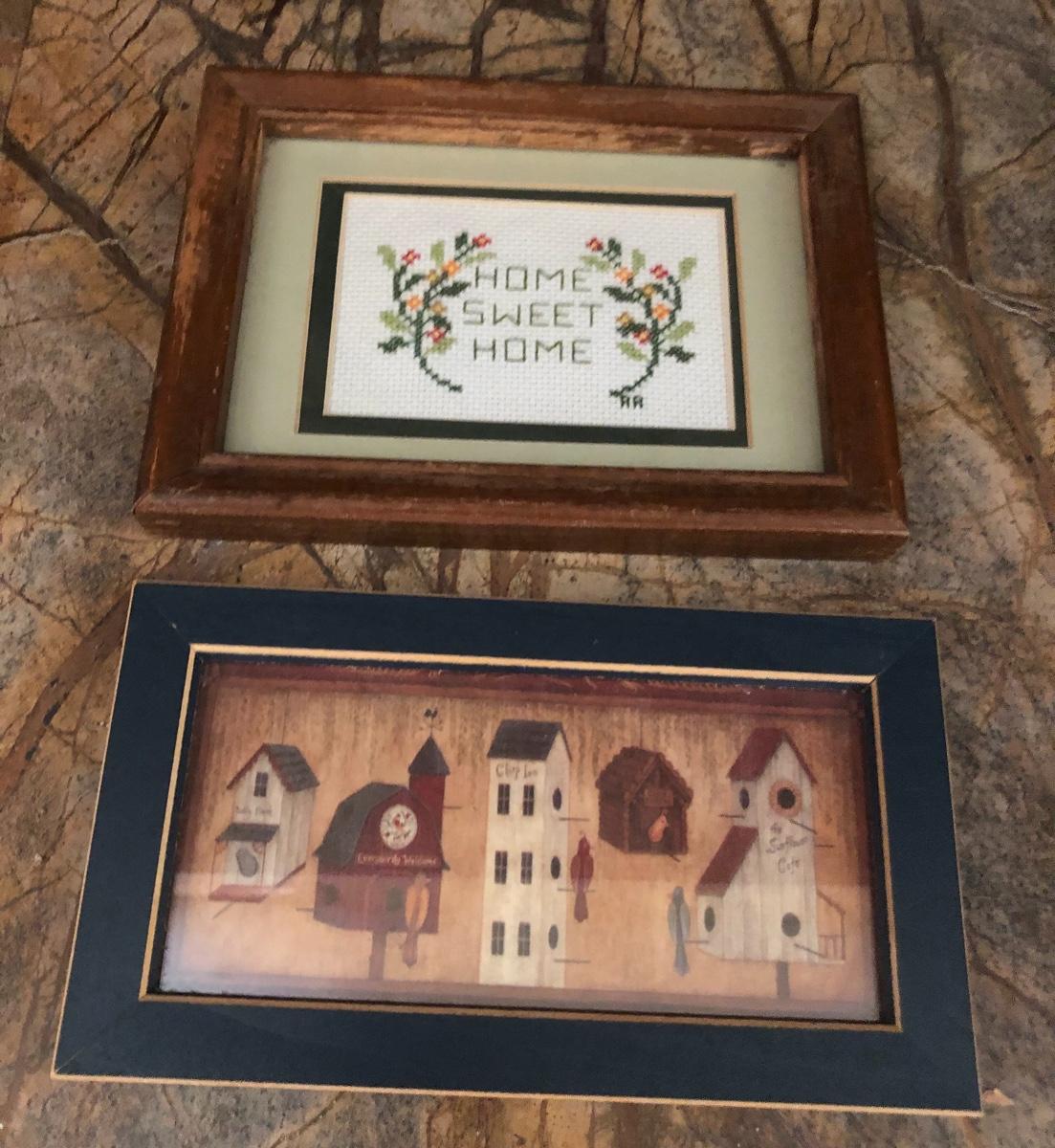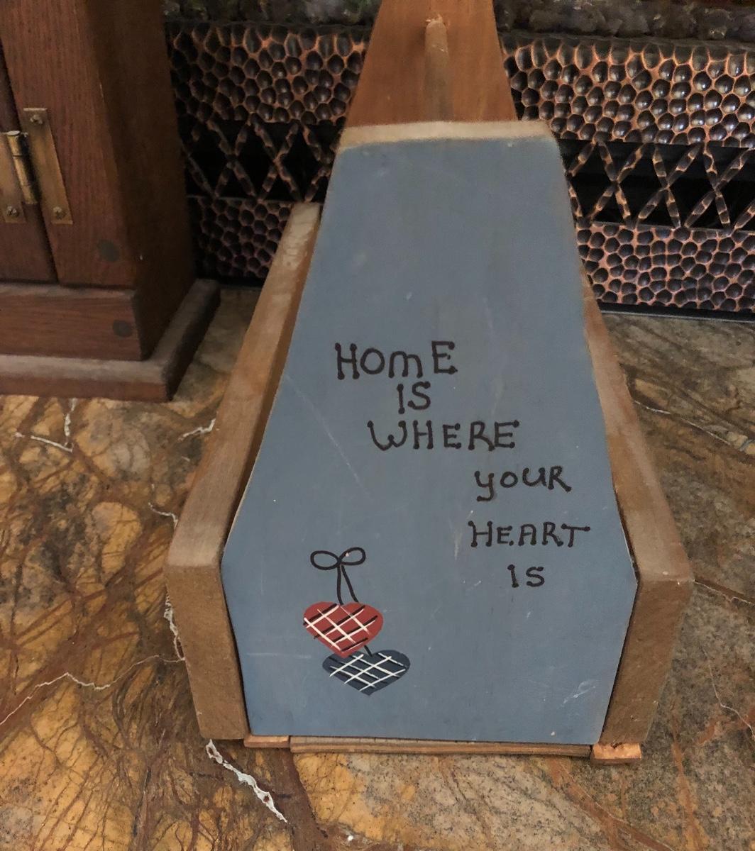 Our home is where our heart is and this assortment of decor is all about celebrating it! This lot includes a number of wood pieces that include a decorative wood painted toolbox, small houses, a tray with a cross-stitch under glass, faux stackable books, a battery operated clock which works and more. Also included is an attractive small wreath, lace hanging piece, lace and cross-stitch doily, small pillow, larger weighted pillow and more. The last image shows a wooden spoon added to this lot that is not in the image showing everything.