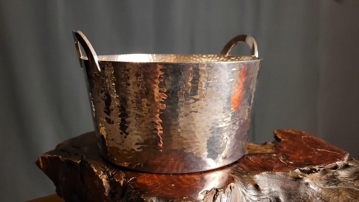Lot 168: Vintage MERIDEN INTERNATIONAL #646 Silverplated Hand Hammered Ice Bucket