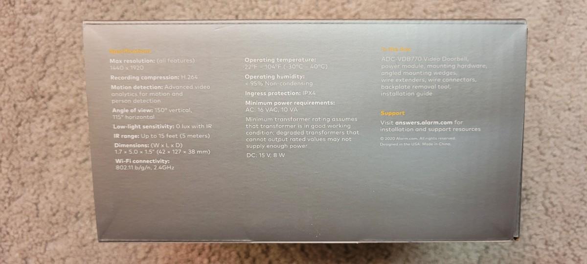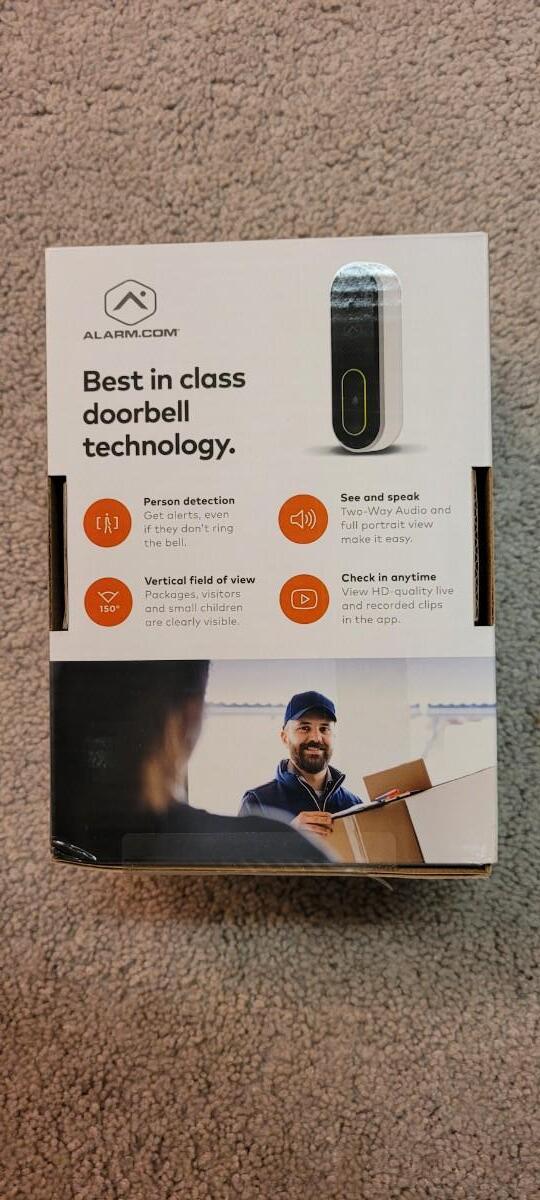 Lot 168: ALARM.COM New Sealed Video Doorbell w/ TWO WAY AUDIO Remote Monitoring via Mobile App