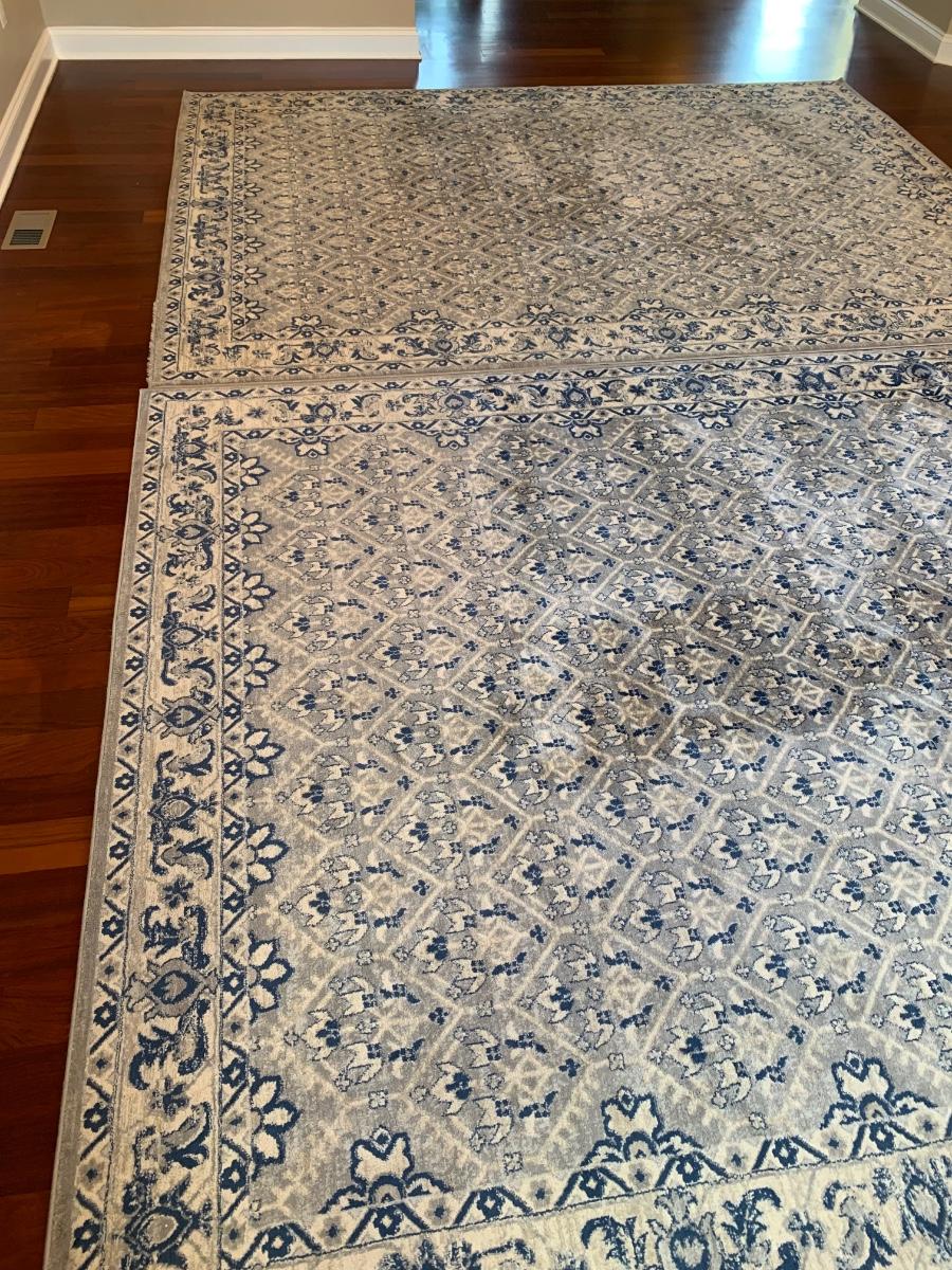 Lot is for 2 area rugs, both are in used condition. One has minimal fraying and both have a fade mark & a few light stains.