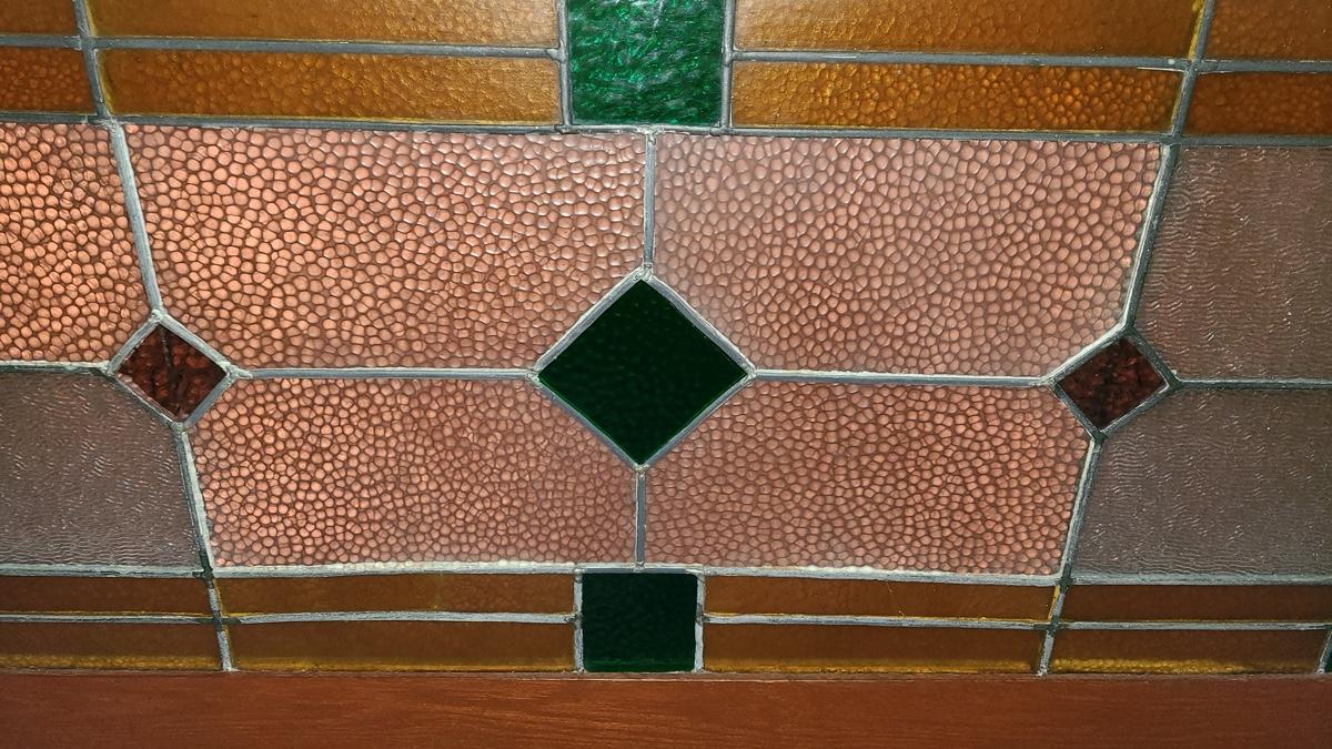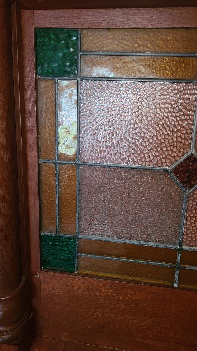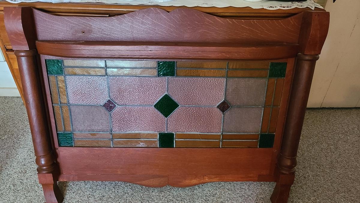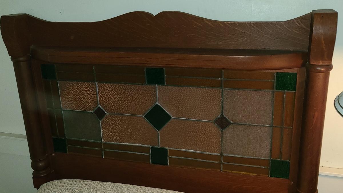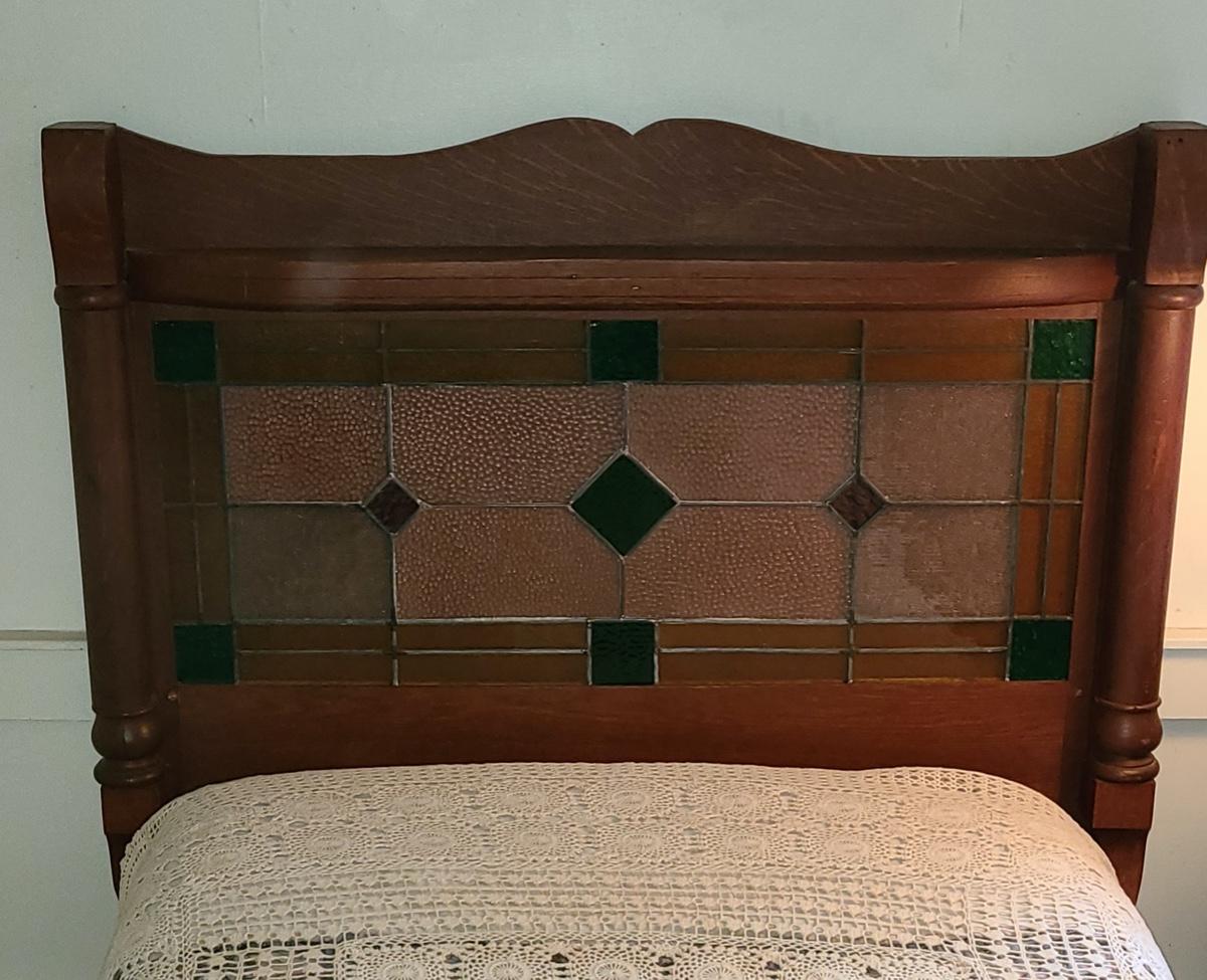 Lot 168: Antique Stained Glass Panel in Headboard Frame