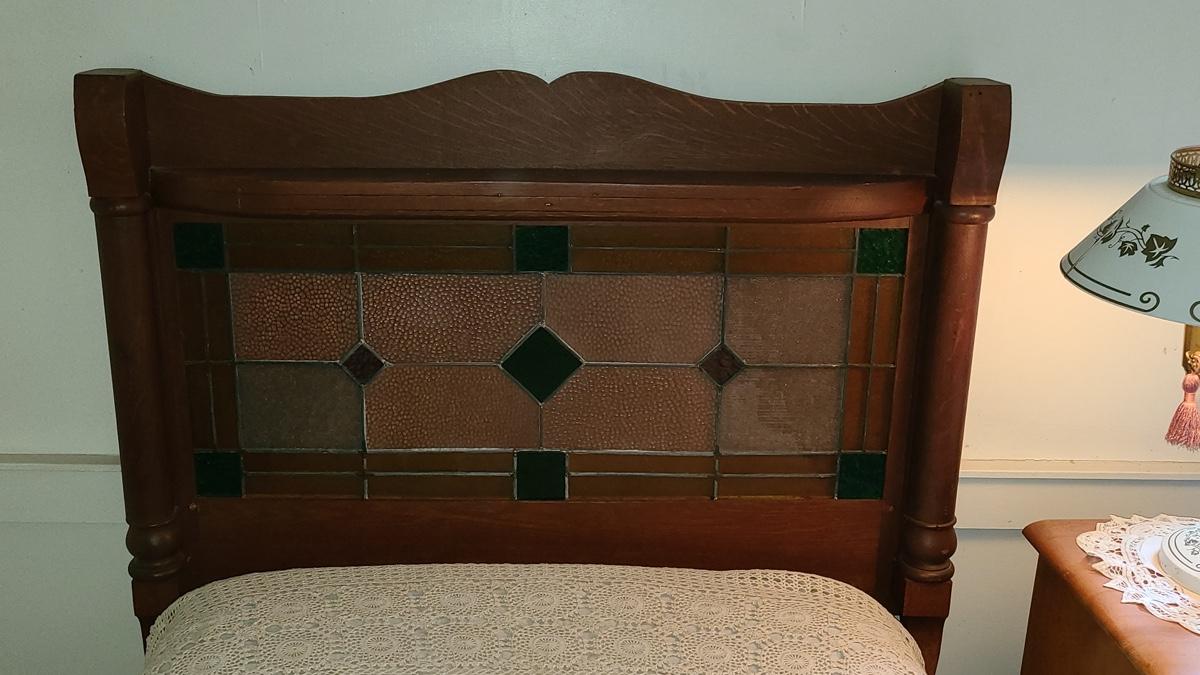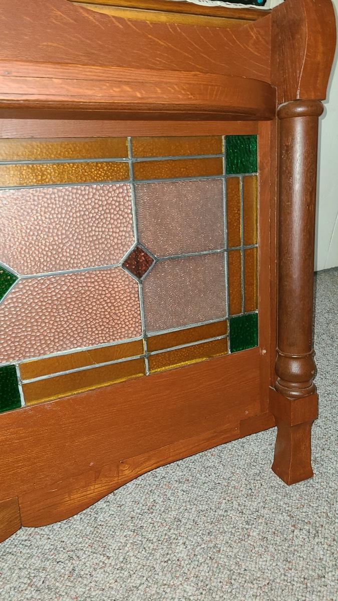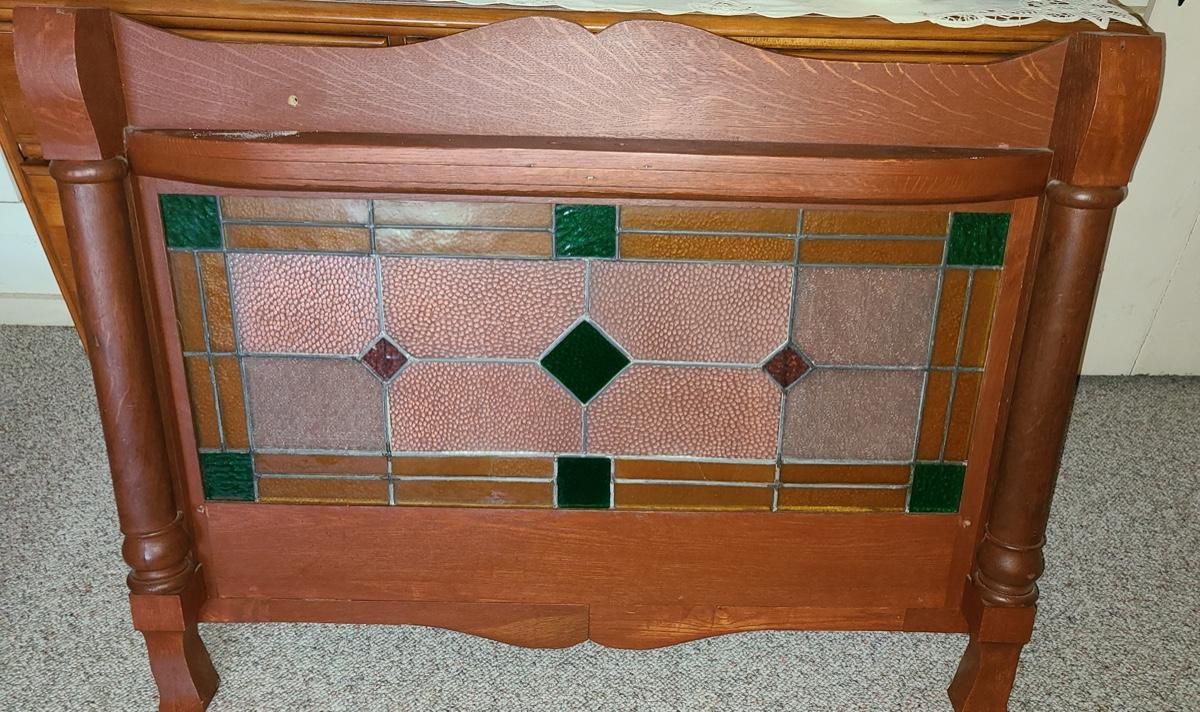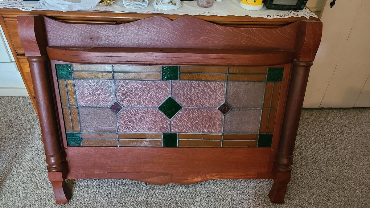 This was used as a headboard on a twin bed as decoration. The colors are gorgeous. Can be removed from frame, but you will need tools to do at home. The twin mattress and bedding are not included. This is just for the headboard with the stained glass piece. Please see pictures as they are the best representation of the item, the condition of the item, and the size of the item.