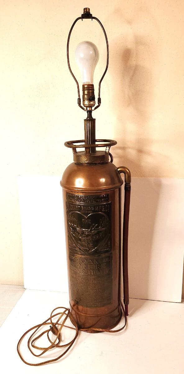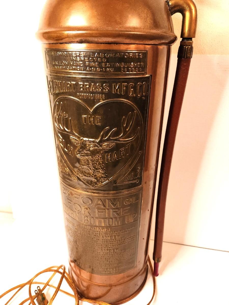 Lot #168 Antique The Elk Hart Brass Fire Extinguisher Made into a Table Lamp