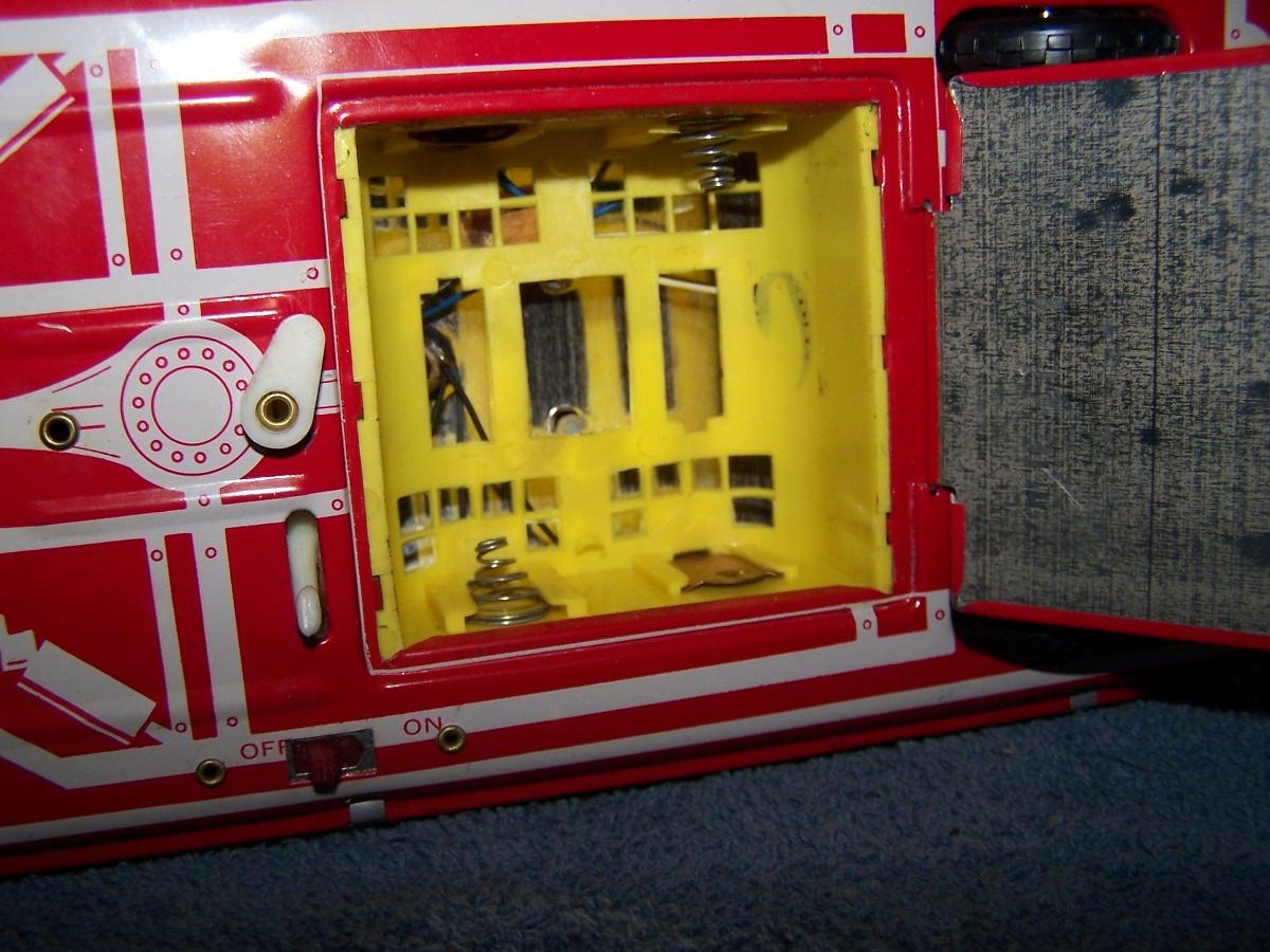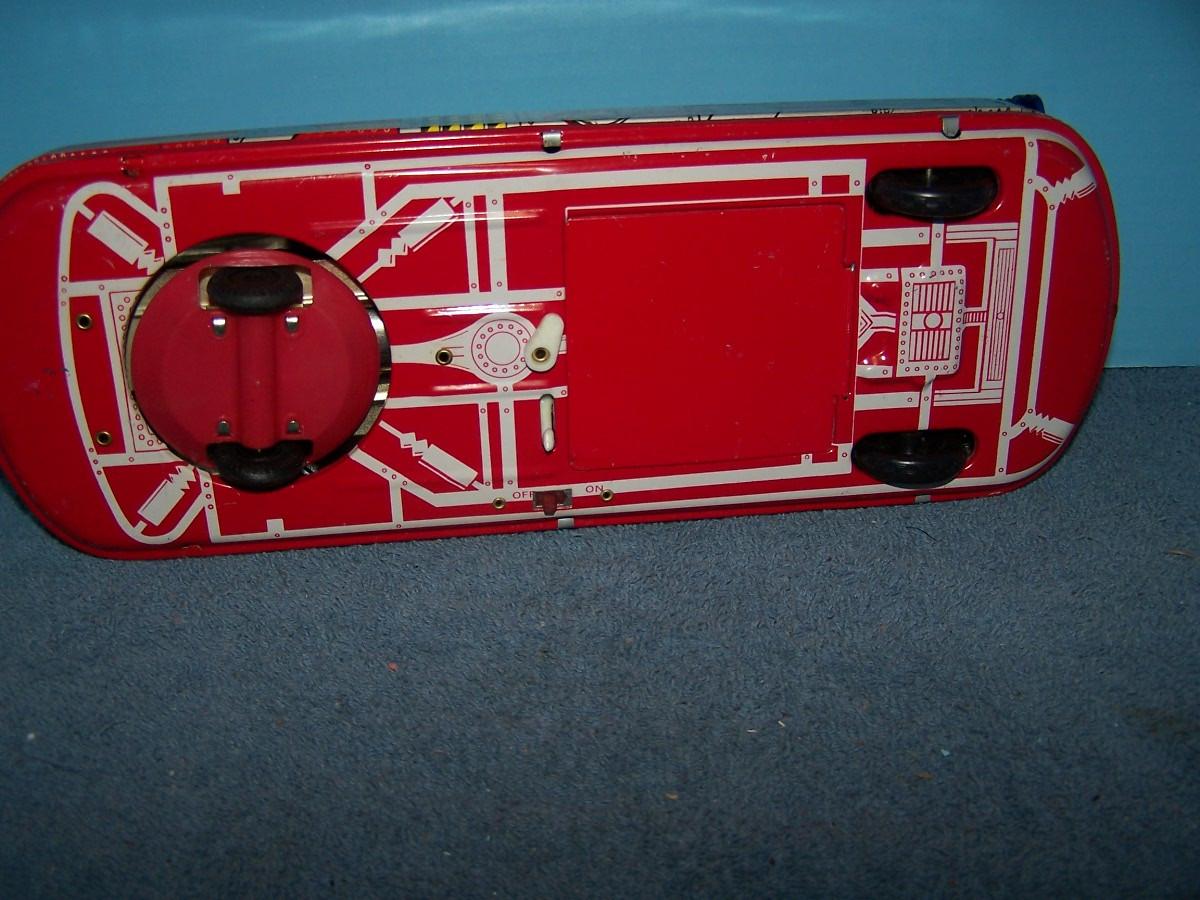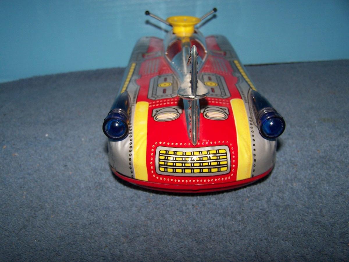 THIS IS A FAB COLLECTABLE TIN LITHO RED SPACE ROCKET TOY CAR!!! RUSSIAN??? 14'' LONG... NEEDS C CELL BATTERIES.. LIGHT WEAR.. (NOT TESTED DID NOT HAVE BATTERIES, AS IS.)
