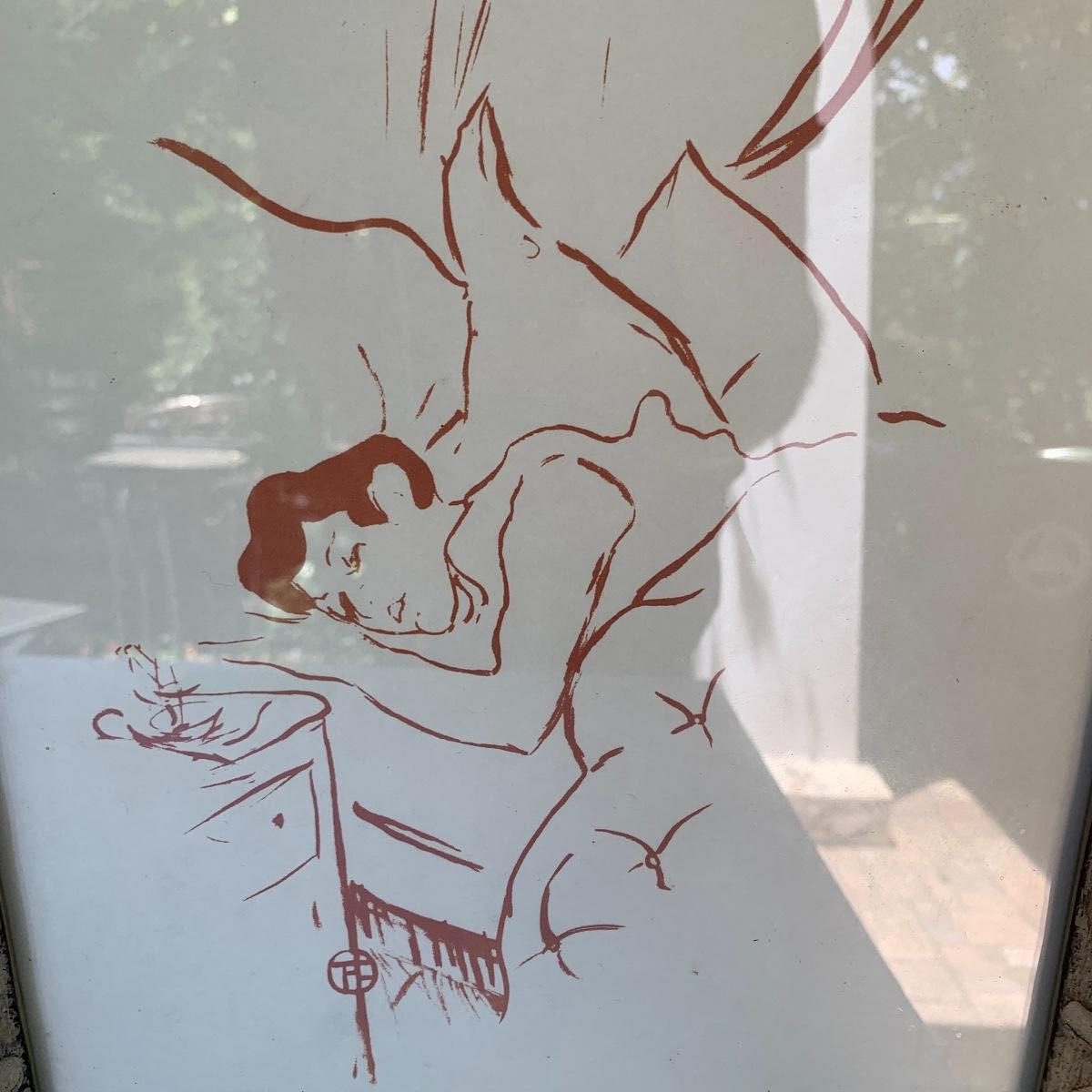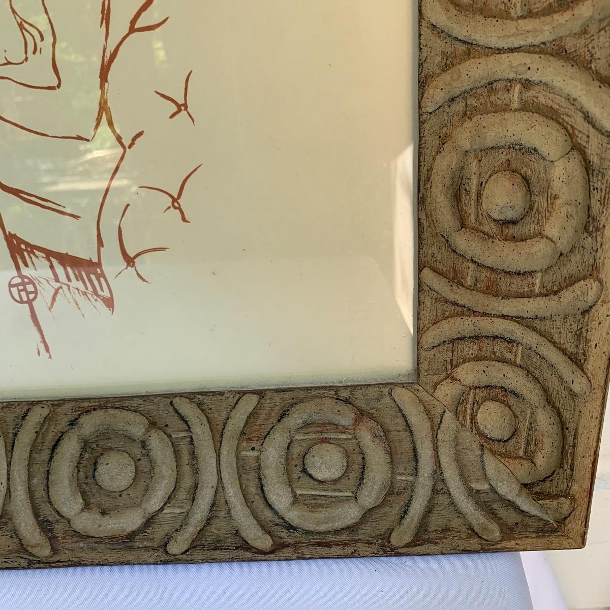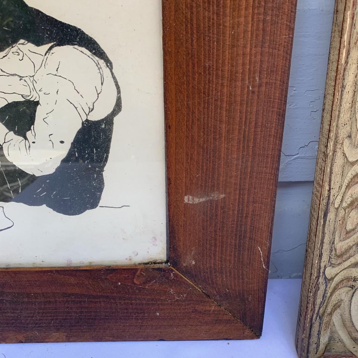 Sometimes great art is very simple. That is the case for lot 168 featuring two framed prints. The first is a quaint depiction of three lady’s working on textiles. The medium is black ink and the frame appears to be homemade of darkly stained wood. This item measures 17” X 21”. The second print is a simple yet elegant picture drawn in red of a person laying cozy in bed and measures 16” X 14”. Both frames are great so you can always use for other art! Shipping available.