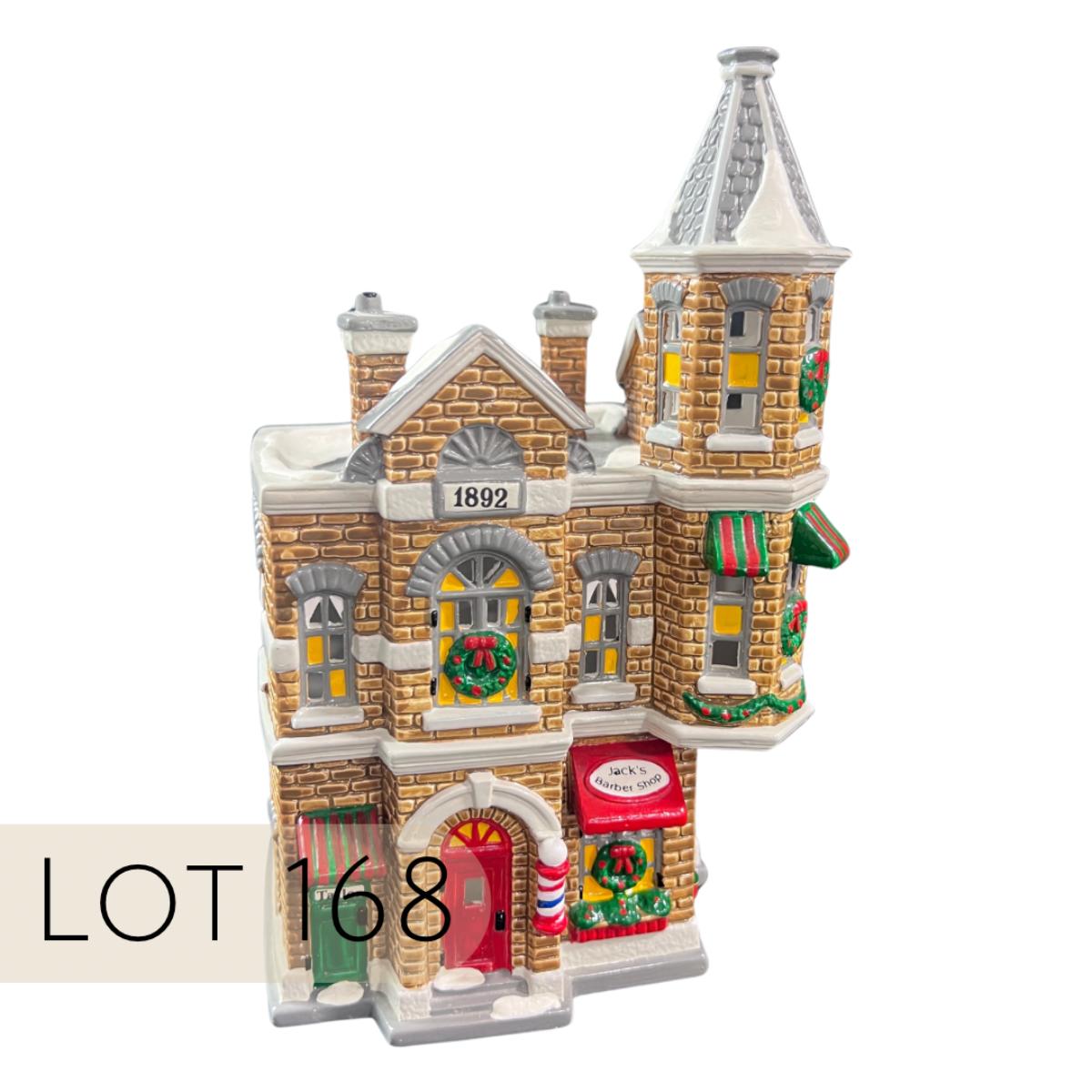 Pretty fancy building for Jack’s Corner Barber Shop, don’t you think? Piece is in nice used condition, and just needs a light cleaning. Please see photos for details and condition. ::: Shipping is available on this lot. If you require shipping you must let us know at the close of the auction. We will coordinate with you after the item has been won. Shipping fees will include insurance up to or exceeding the value of all items being mailed. If you have any questions regarding this lot please contact the auctioneer either via this website, by direct email or by phone. PICK UP TIMES and other important information can be found in the TERMS and DESCRIPTION of the auction. Please take a look for pertinent information. Thanks! Any condition statement is given as a courtesy to a client, is an opinion, and should not be treated as a statement of fact. Reference to condition written, oral or within a condition report shall not be regarded as a full account of condition and may not include all defects, alterations, or restorations. Absence of a condition report does not imply a lot is flawless or lacking imperfections or damage. Katherine’s Auction & Appraisal Service shall have no responsibility for any error or omission. Returns shall not be accepted on the basis of condition.