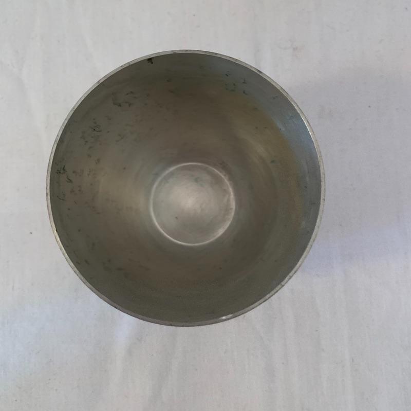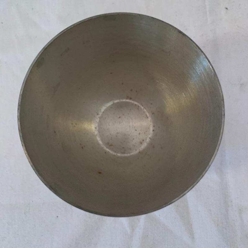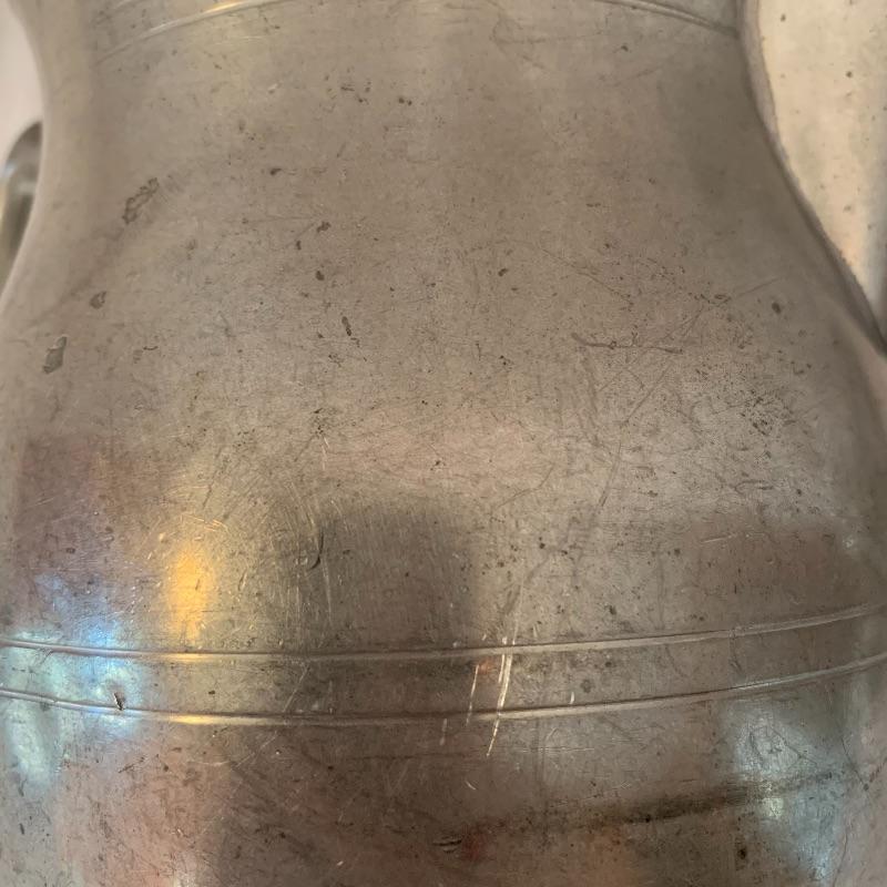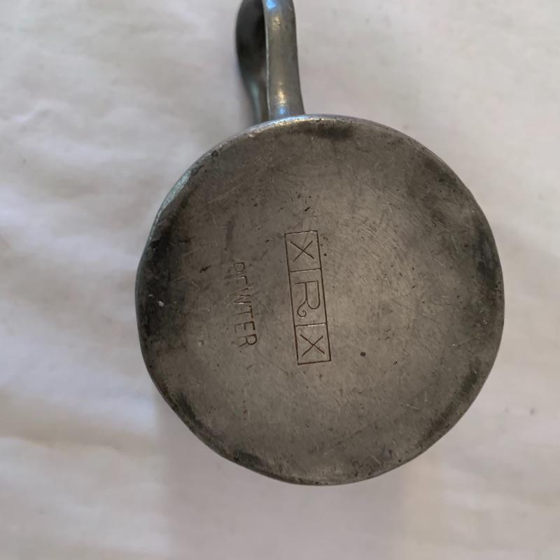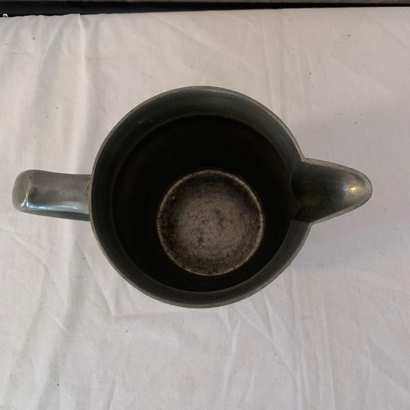 This lot includes one Cromargan metal serving plater, one Charles Hall metal pewter pitcher, one XRX pewter thick metal cup, and five Kirk Stieff Pewter metal cups. The metal serving player measures about 18in x 12.5in. The pitcher measures about 8in tall. Shipping available.