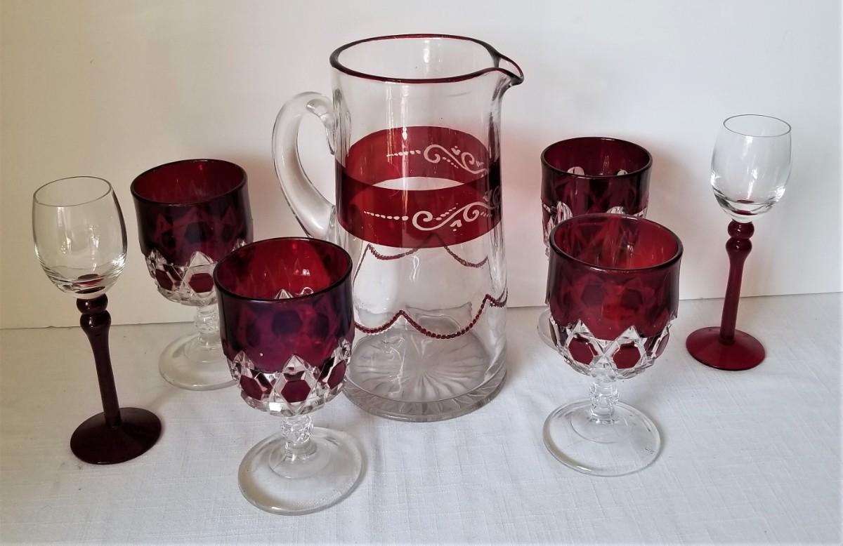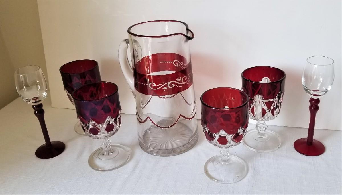 Lot #168  Lot of Vintage Ruby Flashed Glassware - 7 pieces