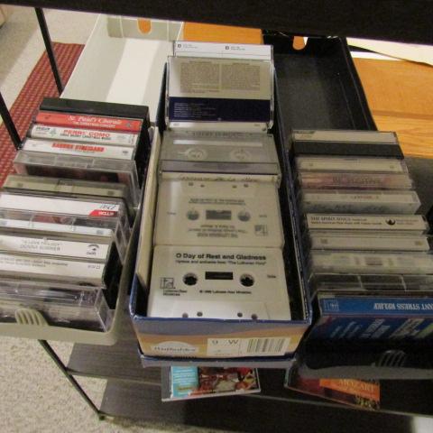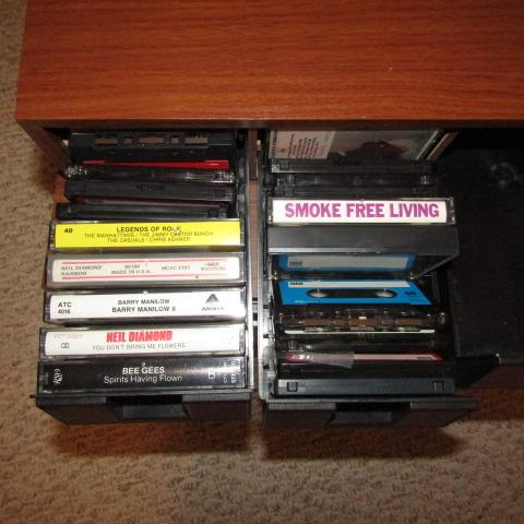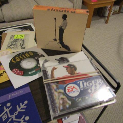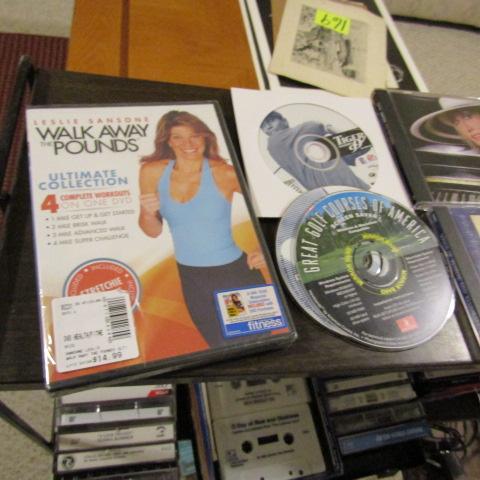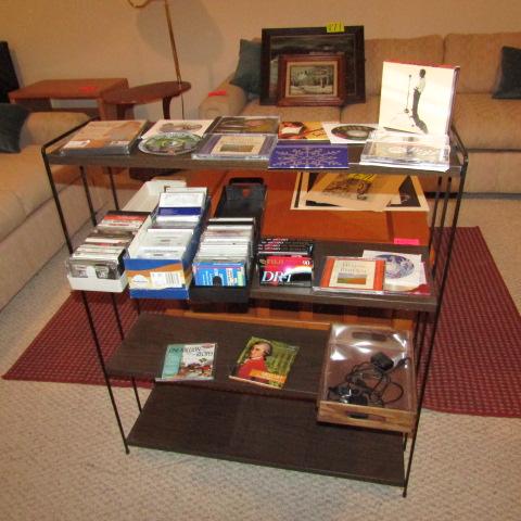 LOT 168 METAL SHELF, CASSETTES, TIGER WOODS GOLF GAME & MORE