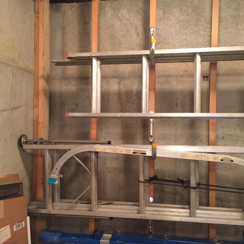 Werner 13’ maximum extension ladder and a 17’ maximum extension ladder (manufacturer is unknown) Both are aluminum. Also includes a box of parts.