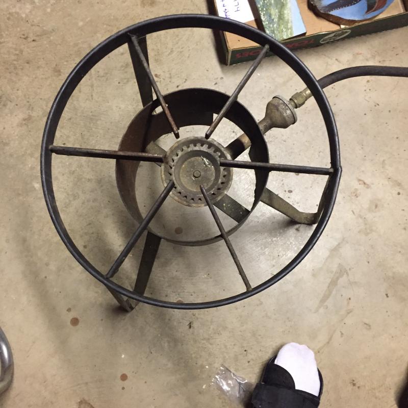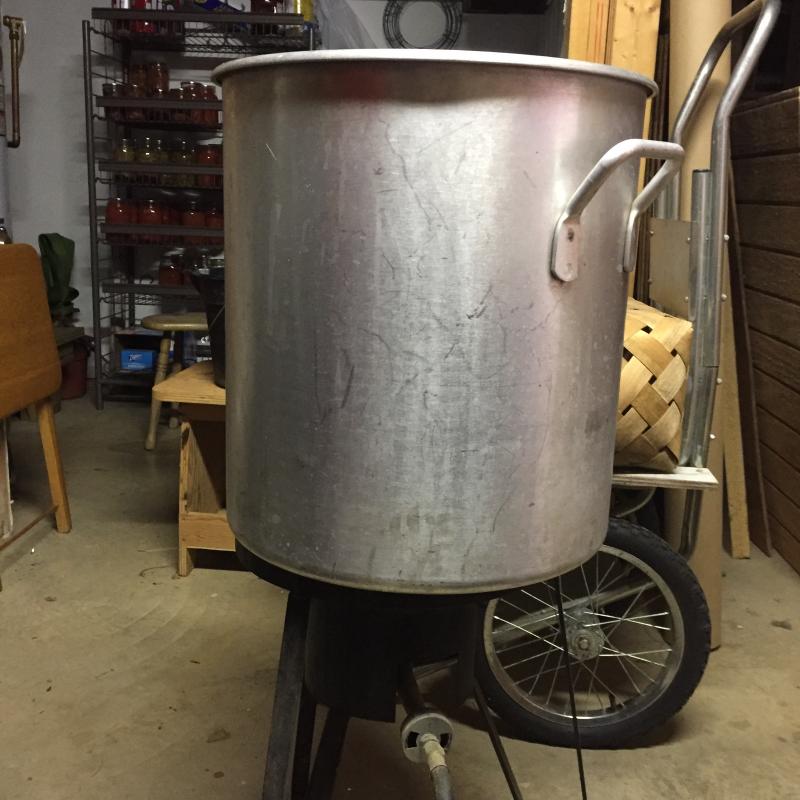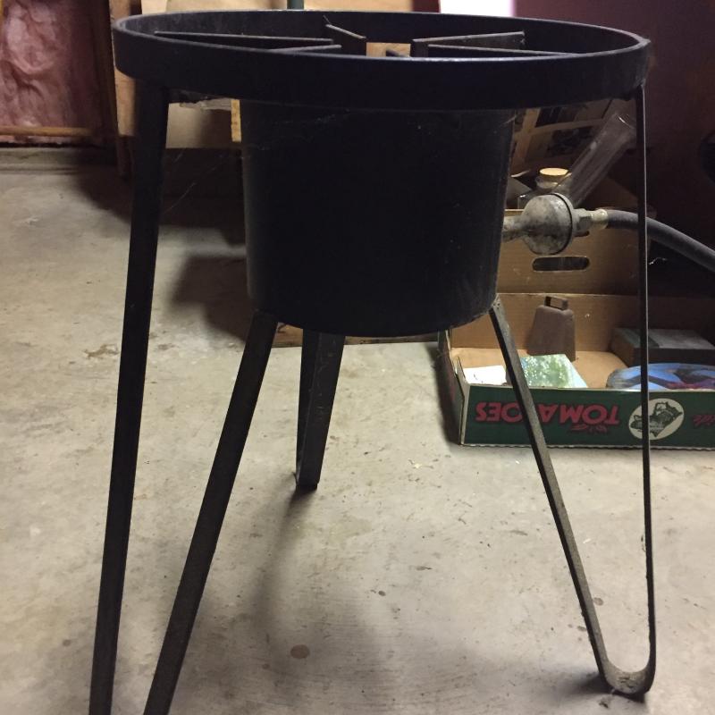 Heavy duty stainless steel pot (no lid included) and burner for propane gas. Pot Measures 18” x16”.