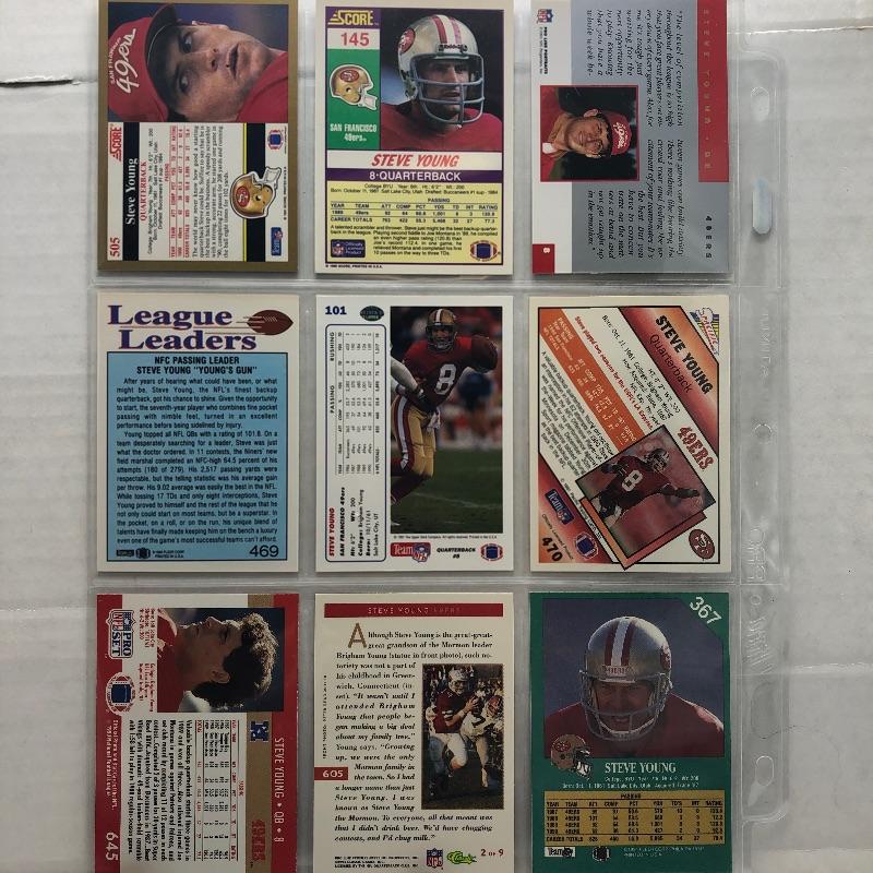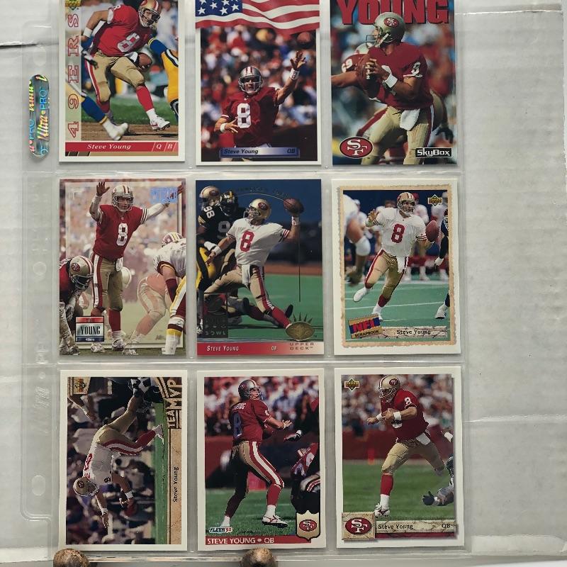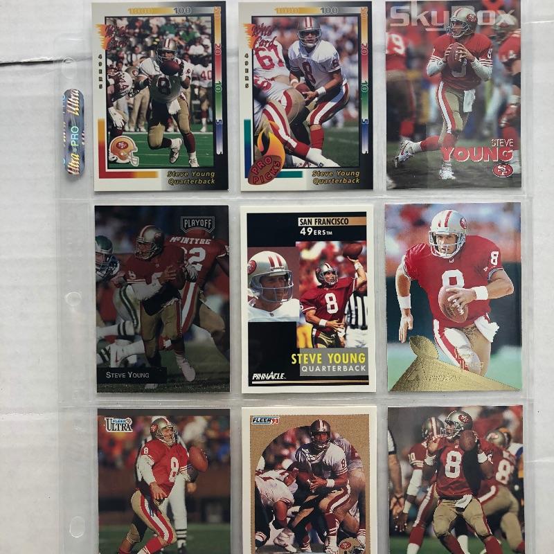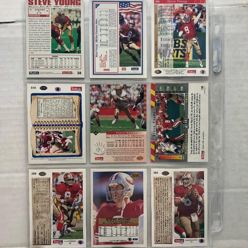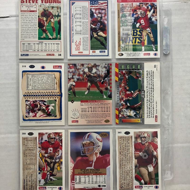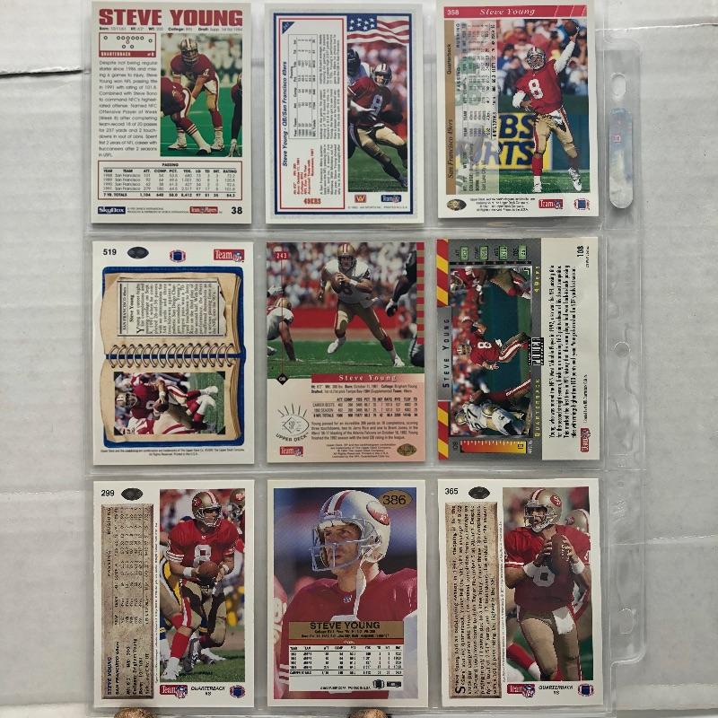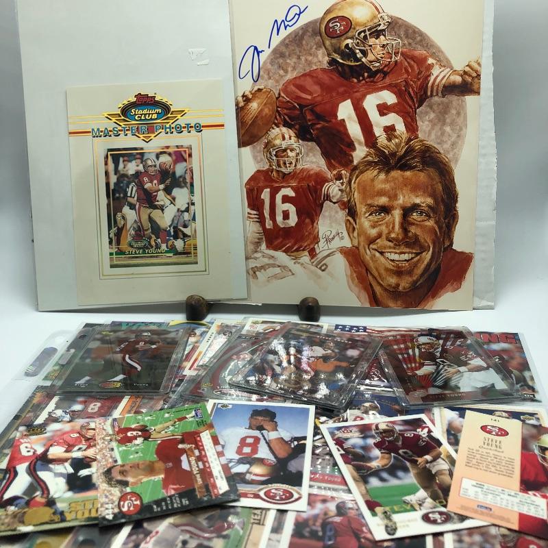 Cool assortment of Steve Young Collectibles starting with the 8x10 signed photo of Joe Montana with COA. Check out the Topps stadium club master photo and the wide array of single cards.