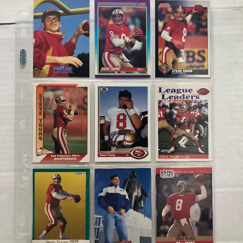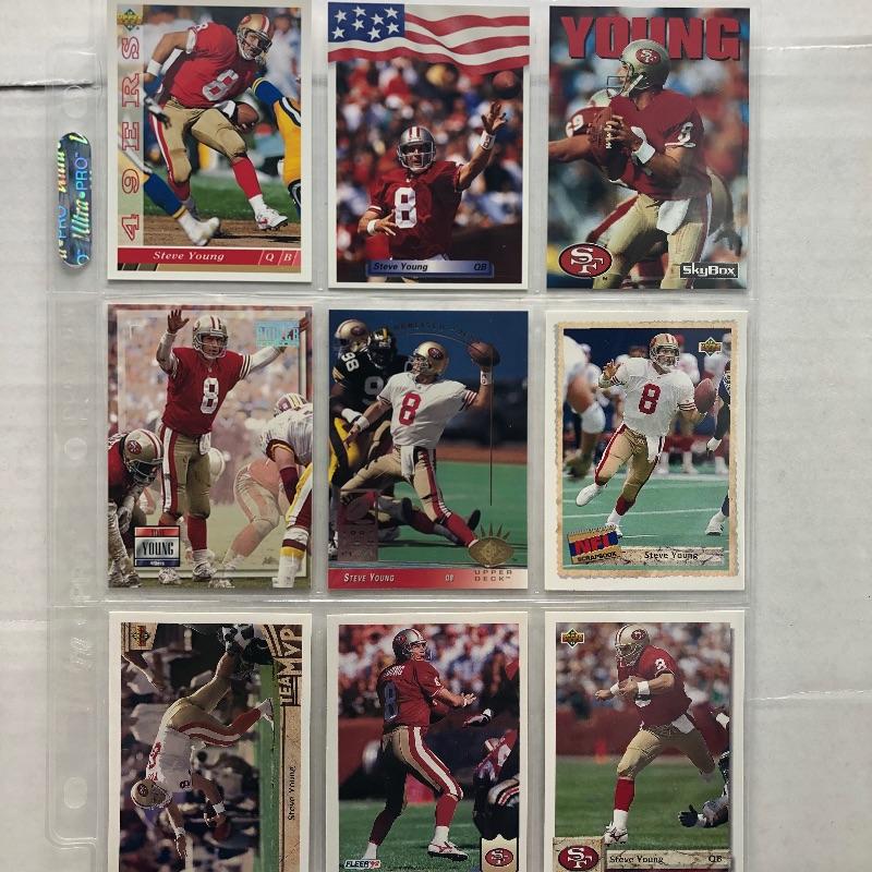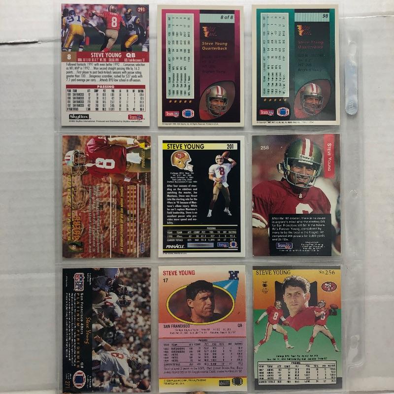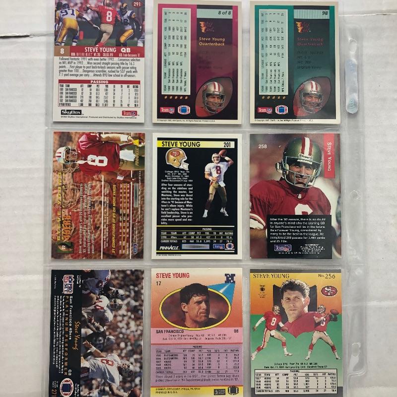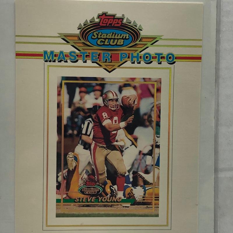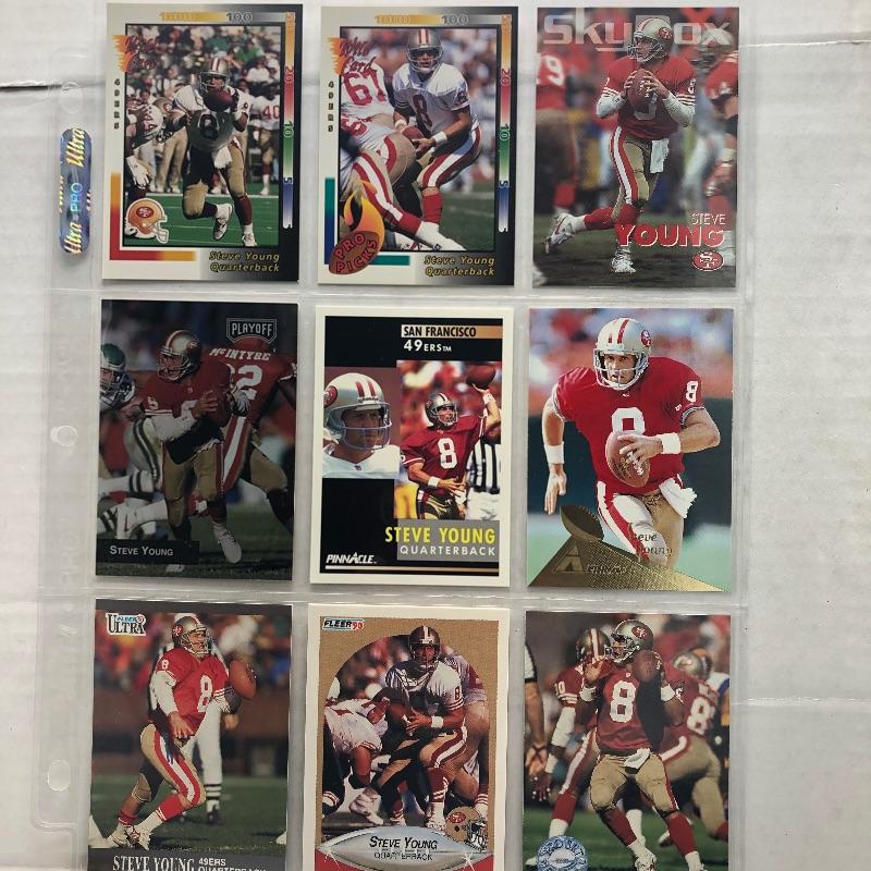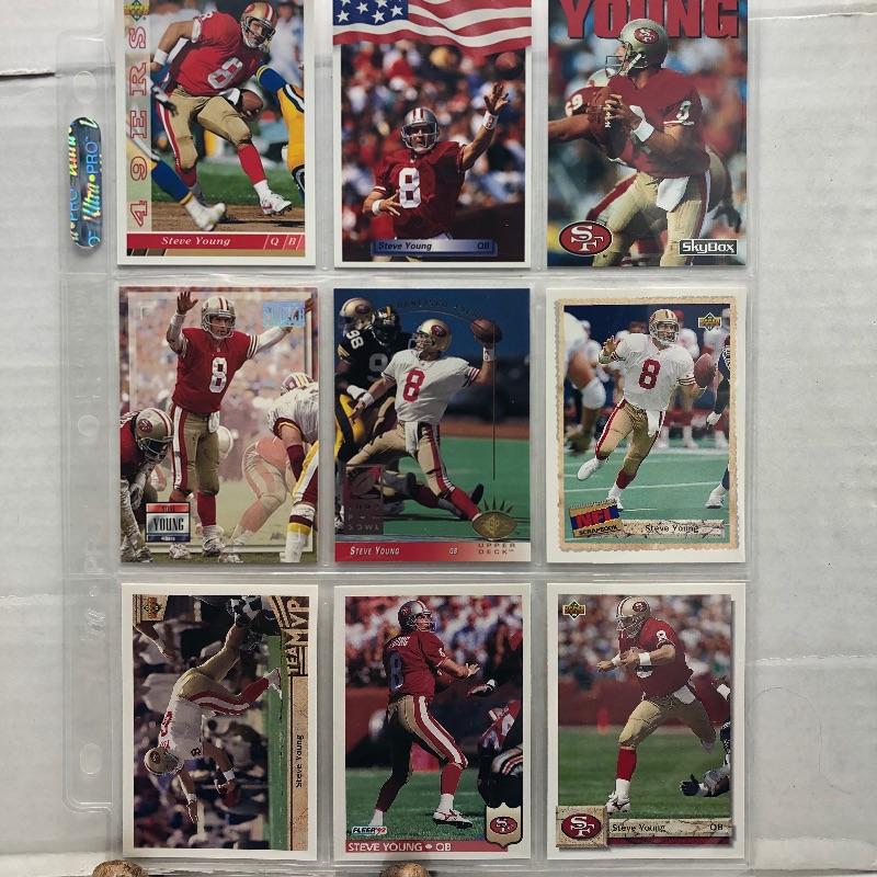 Cool assortment of Steve Young Collectibles starting with the 8x10 signed photo of Joe Montana with COA. Check out the Topps stadium club master photo and the wide array of single cards.