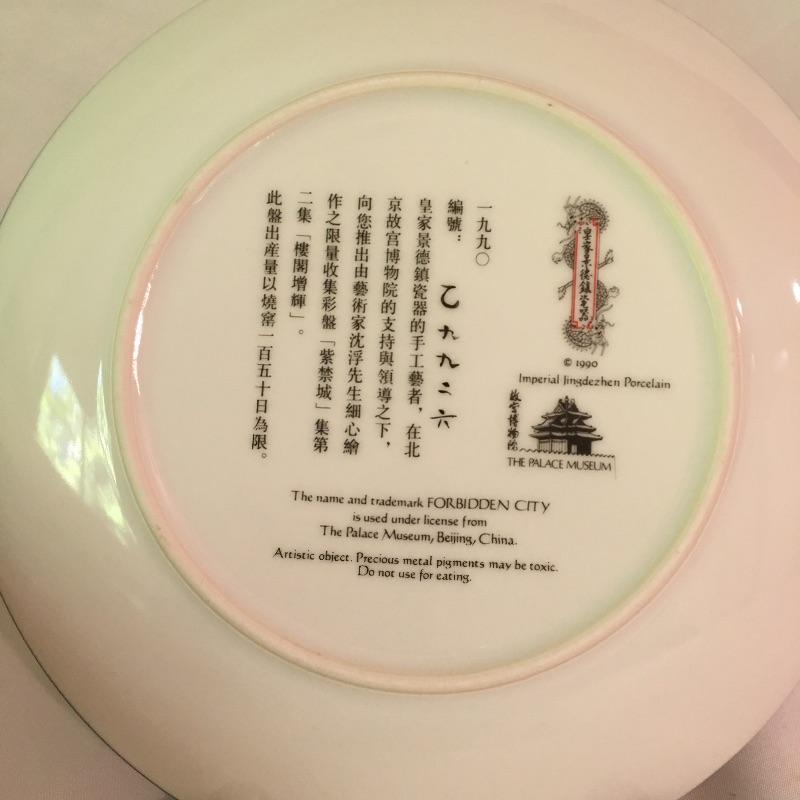 The Palace museum collector plates. Lot includes five Palace museum collectors porcelain plates in five unique designs.