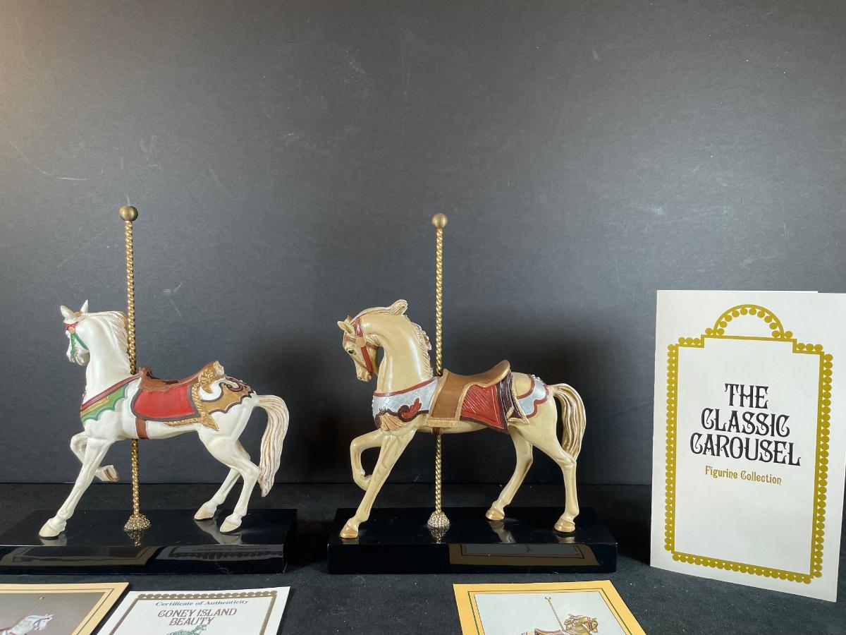 From The Hamilton Collection hand-painted carousel horses 9" tall including base and pole