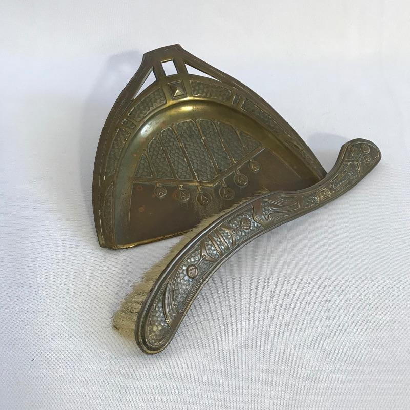 Get out your white gloves, this is fine dining at its best! Vintage table crumber and pan to show your guests the highest standard of service. Or just showcase in your decor. This matching set is a lightweight metal with an art nouveau English design with the Glasgow rose motif. The brush measures approximately 10.5”, the pan is approximately 7.75” x 7.25”. See photos.