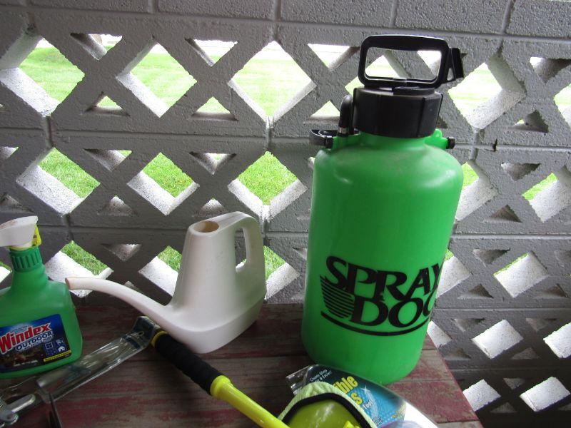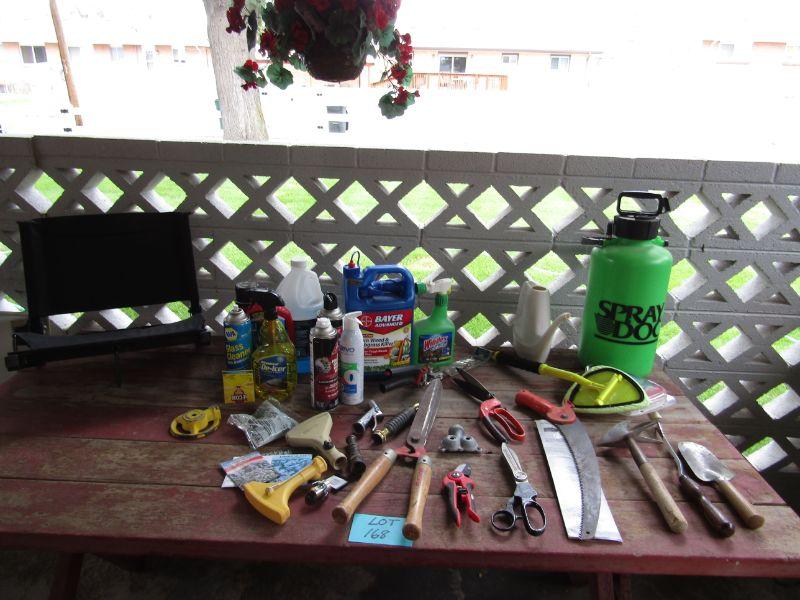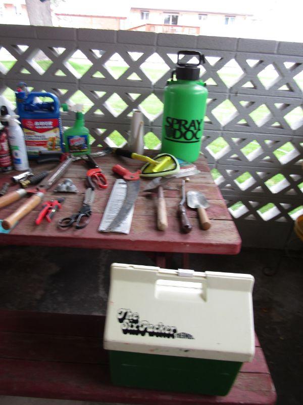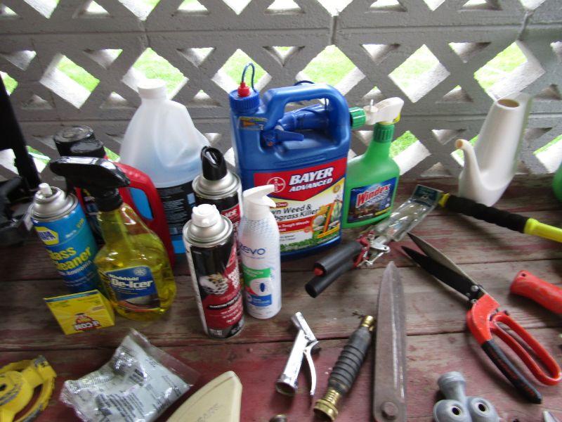 SPRINKLERS, COOLER, TRIMMERS, CHEMICALS, STADIUM CHAIR AND MORE