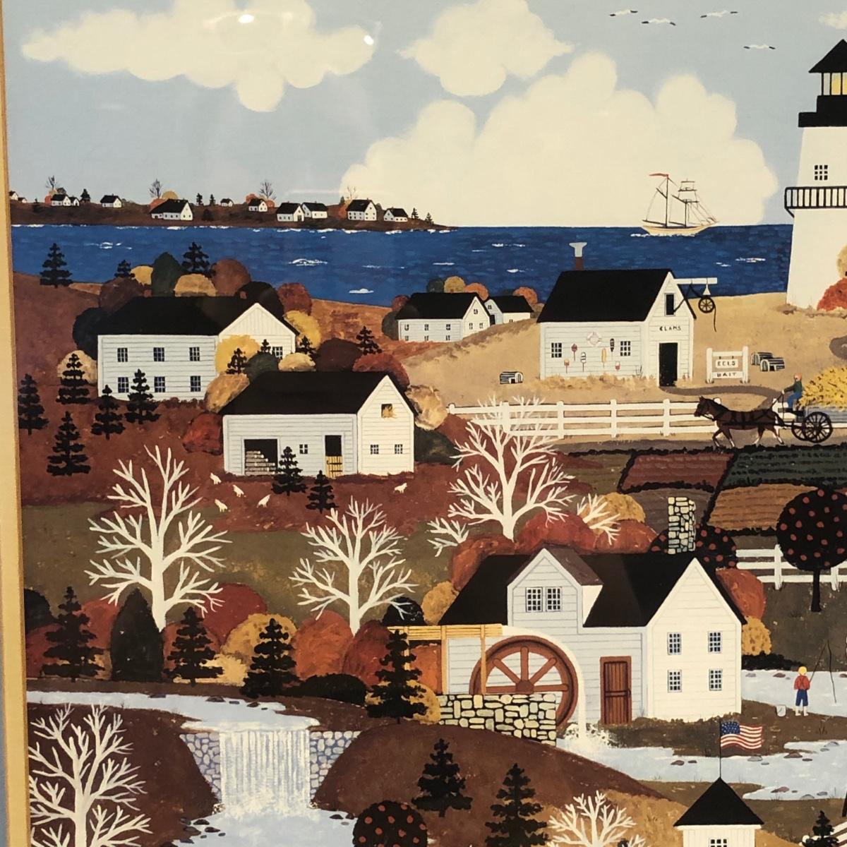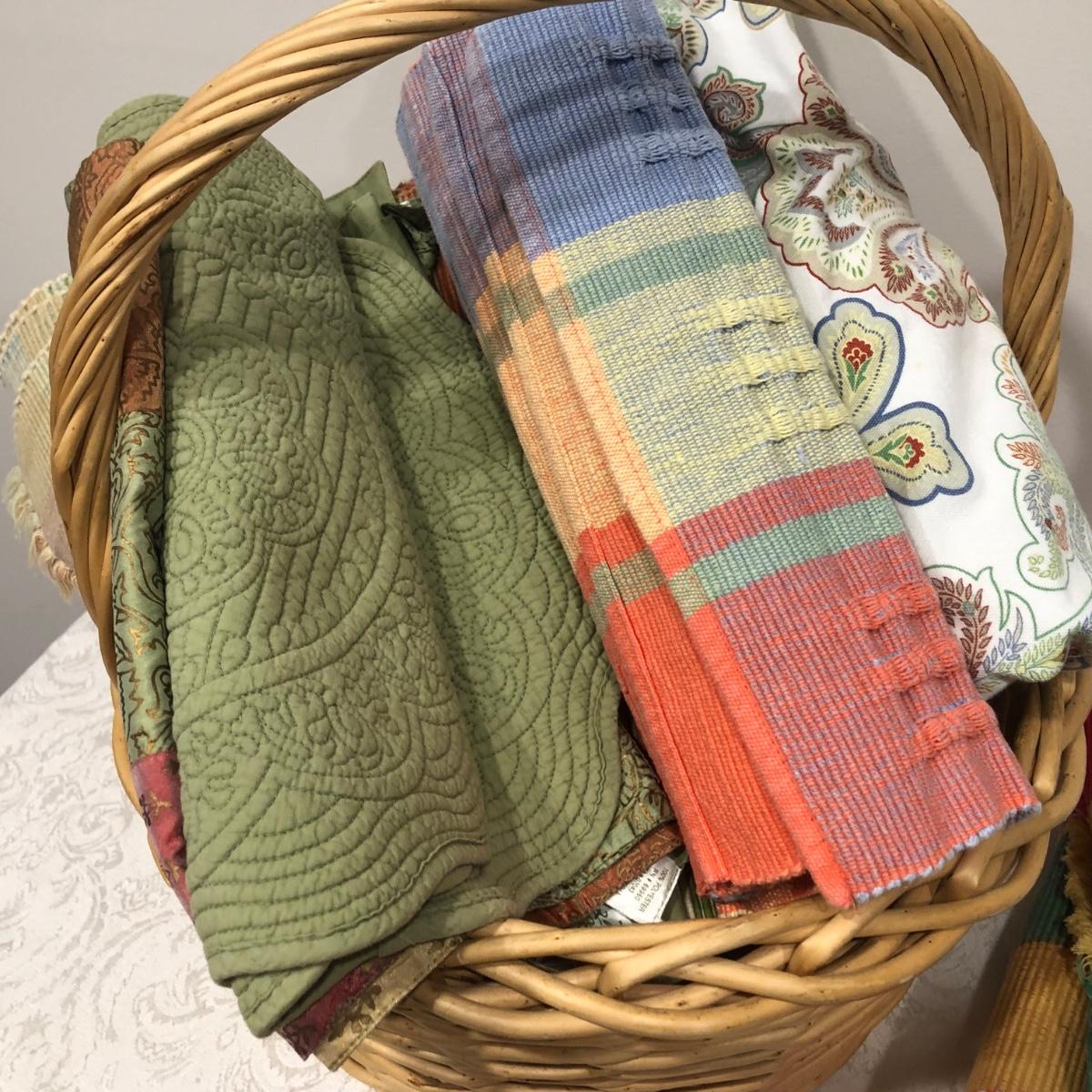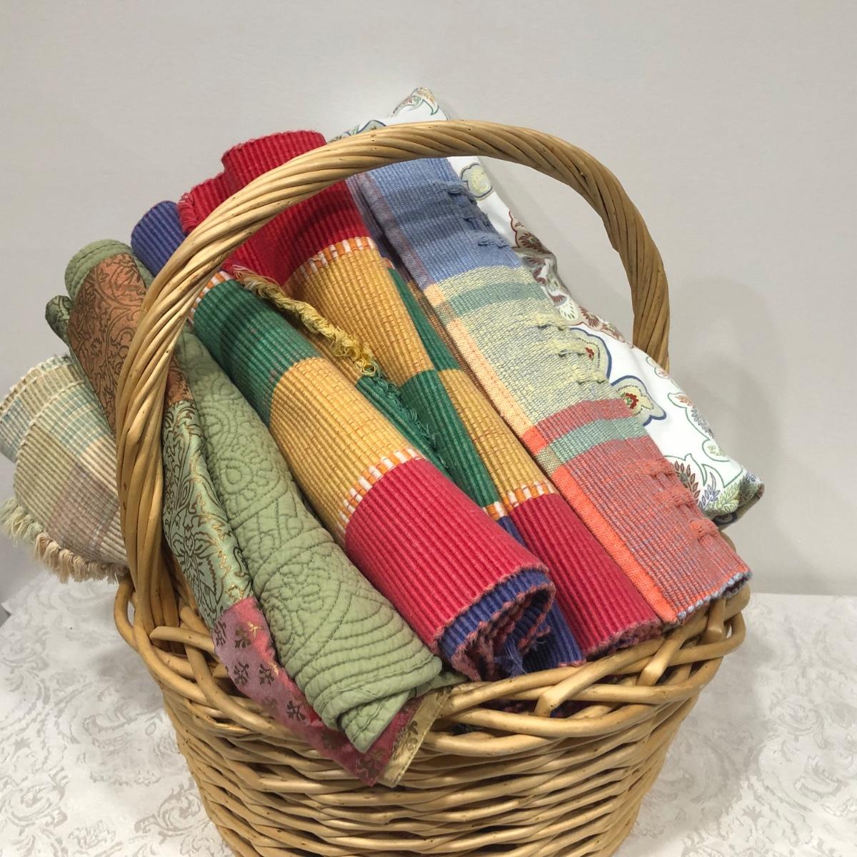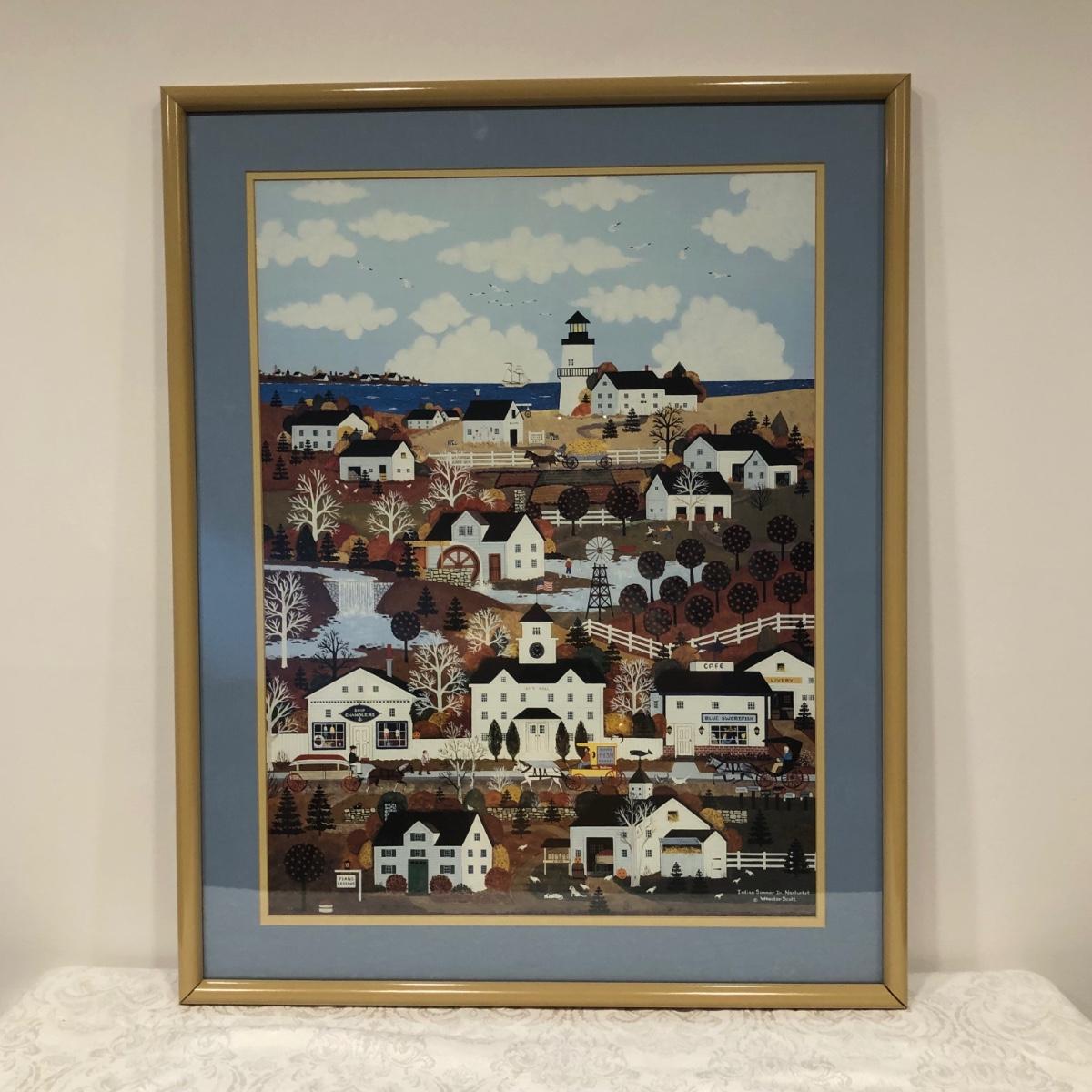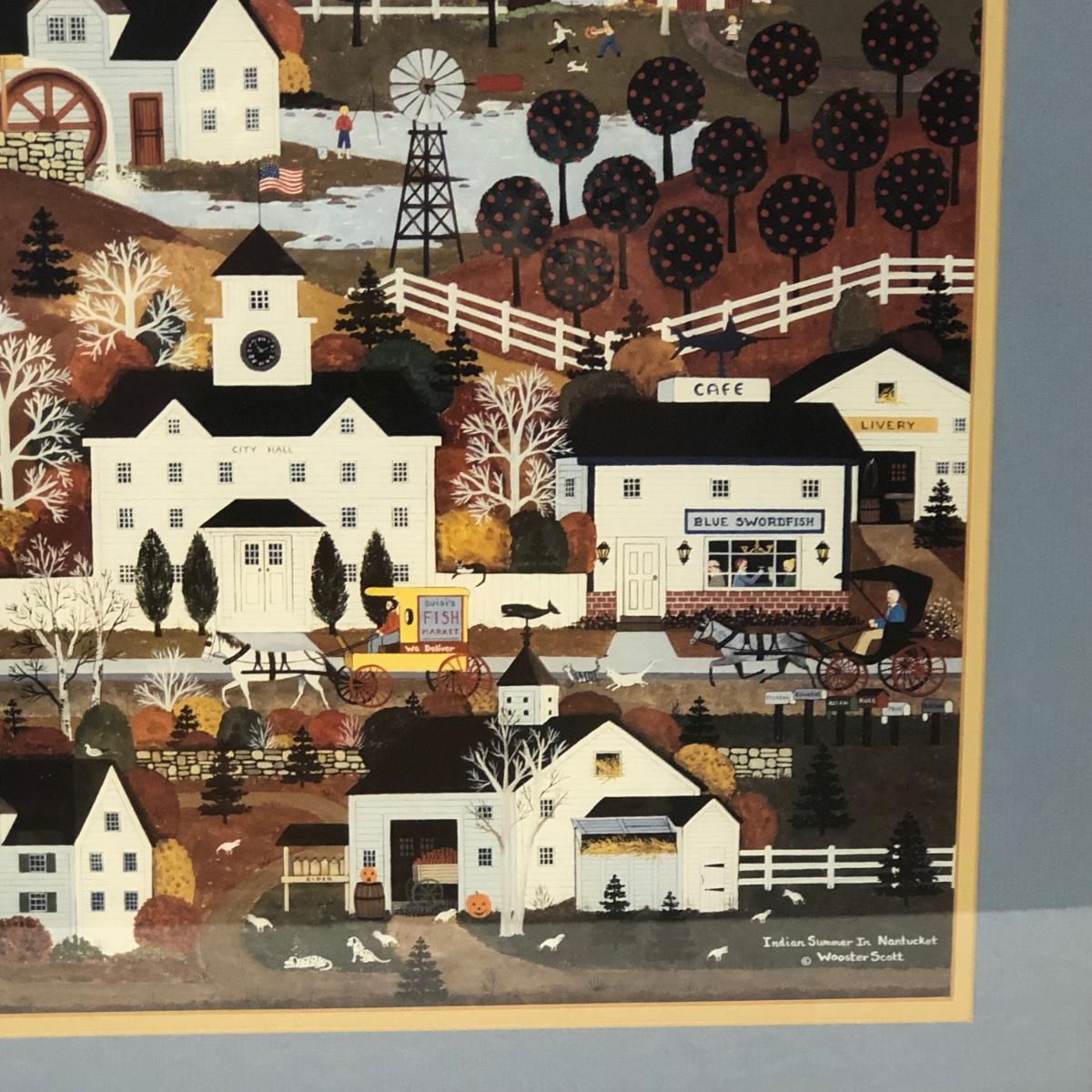 LOT 168M: Wooster Scott ""Indian Summer in Nantucket" Print, Flower Market Door Bucket, Placemats & Basket