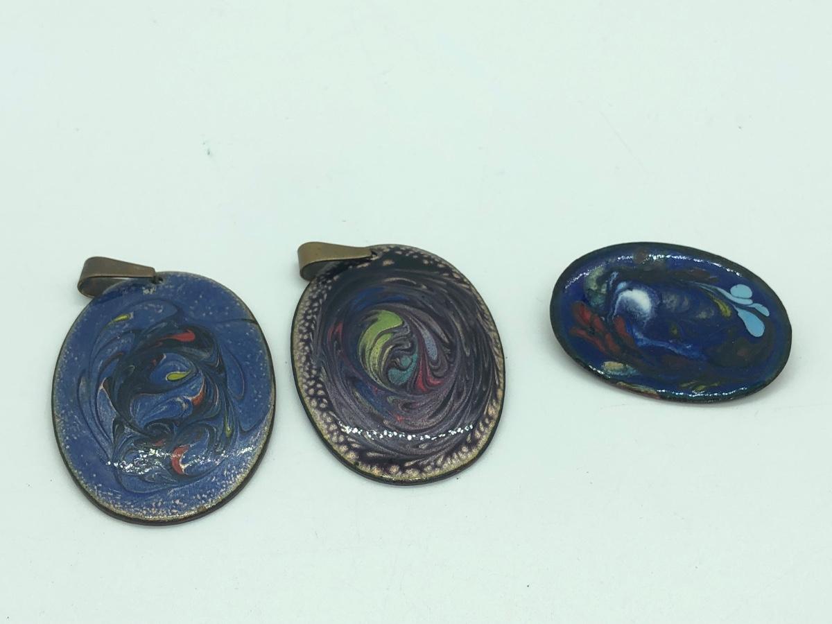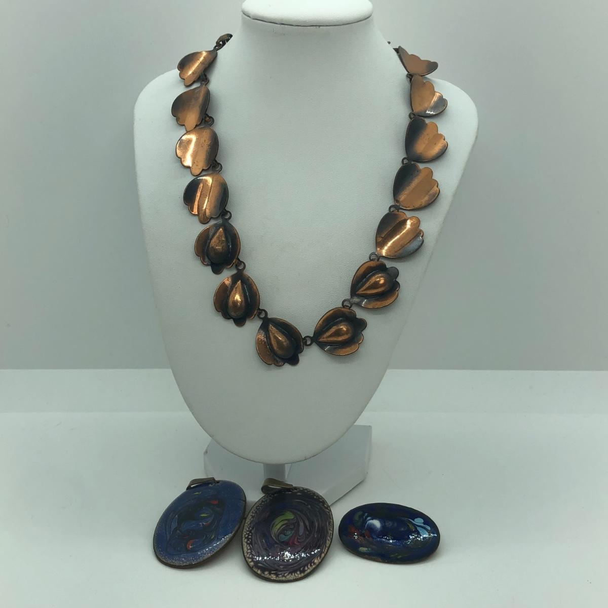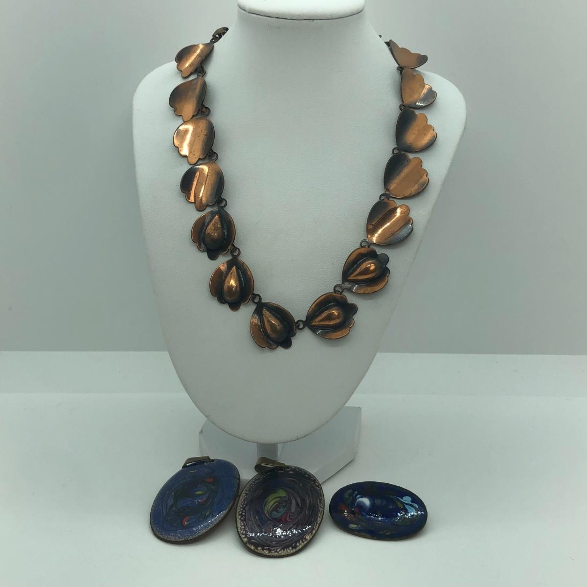 LOT 168M: Copper Necklace, Enamel on Copper Pendants