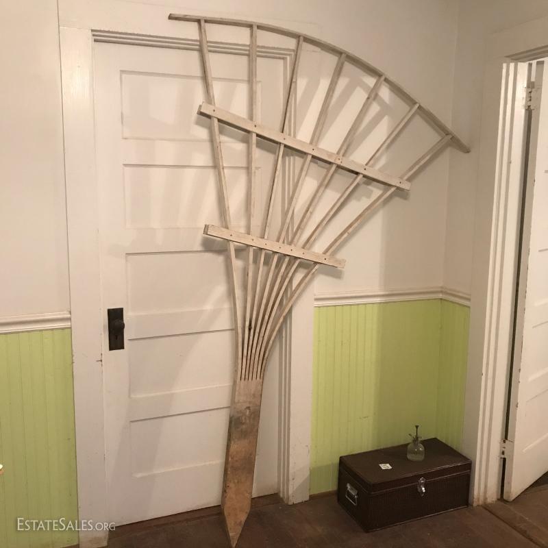 Lot 168:Vintage Tall Wood Fan Trellis and Gardening Tools