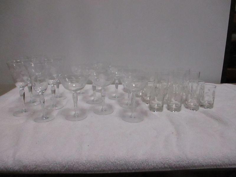 Lot 169 - Etched Flower Glasses
