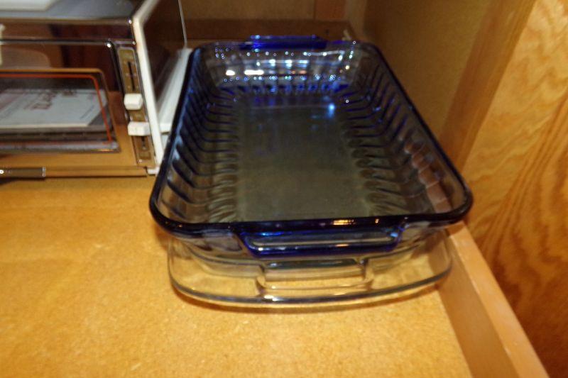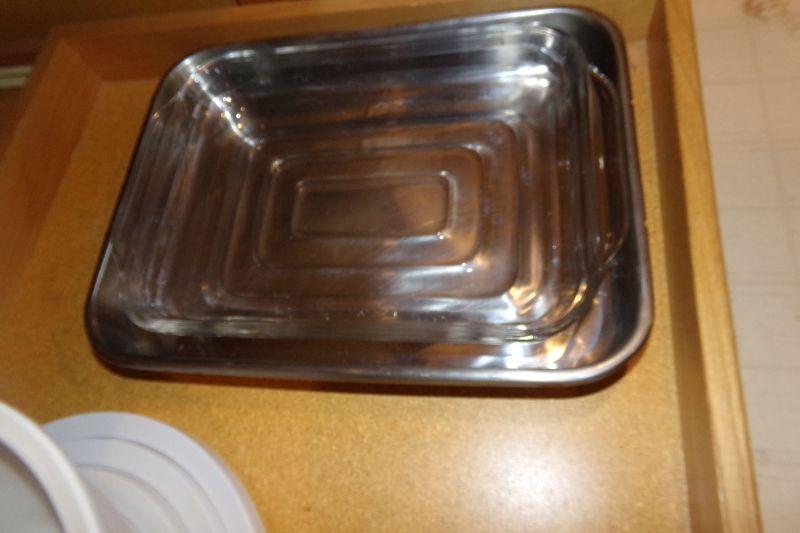 3 GLASS 1 METAL CASSEROLE PANS