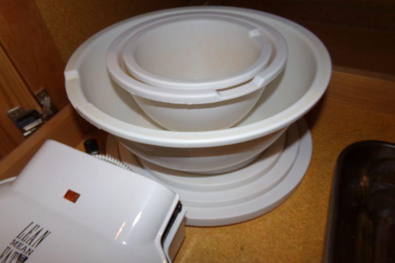 3 PLASTIC MIXING BOWLS W/LIDS