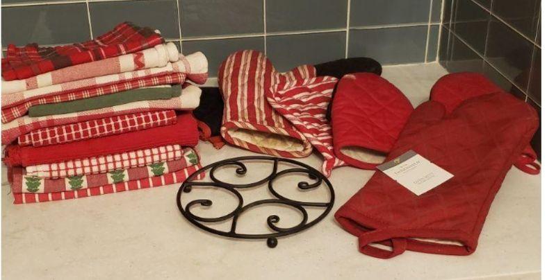 Lot 169: Trivet, Dishtowels & Oven Mitts