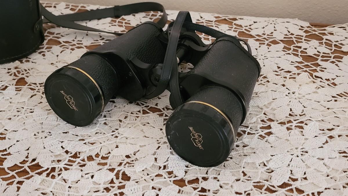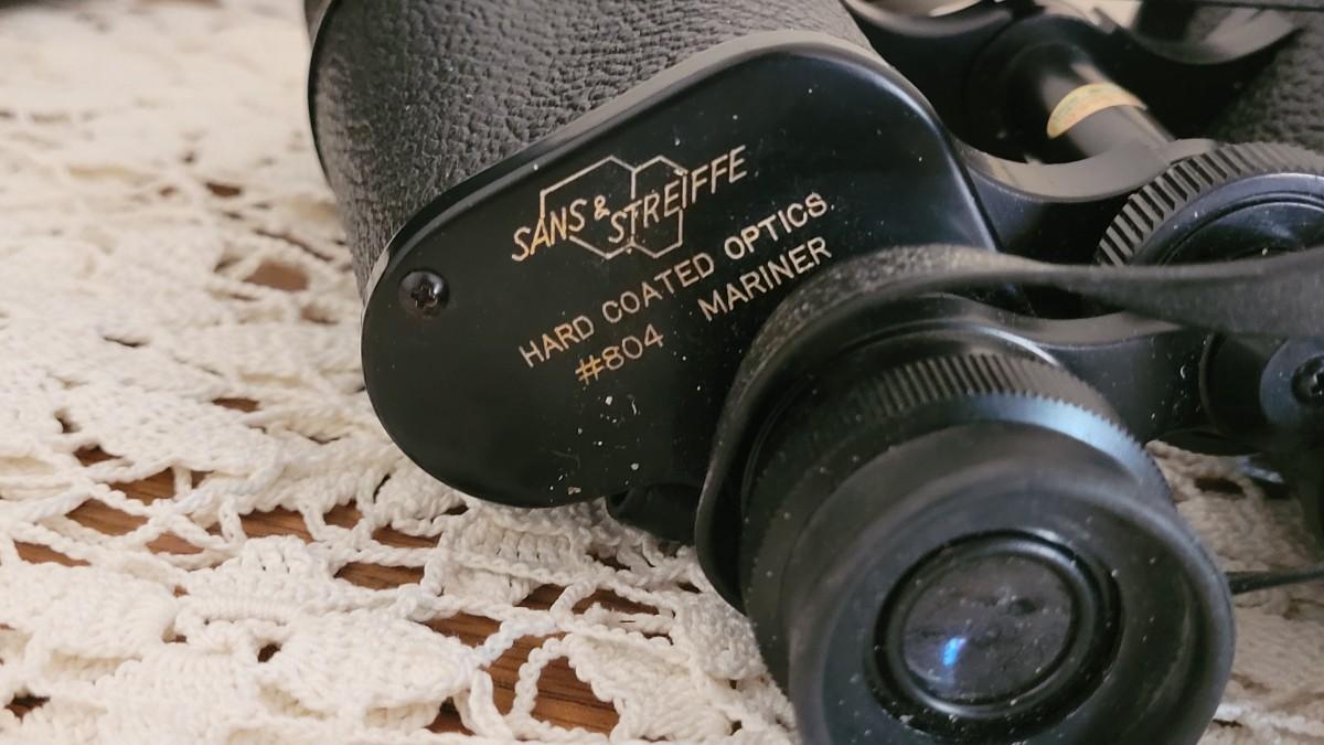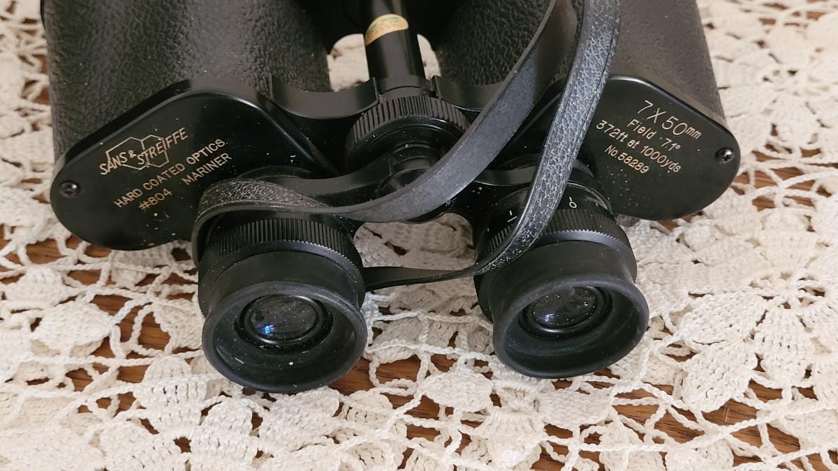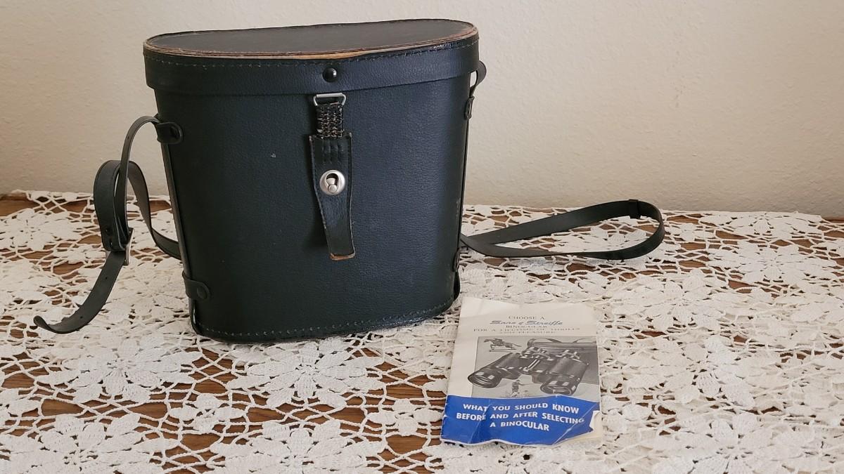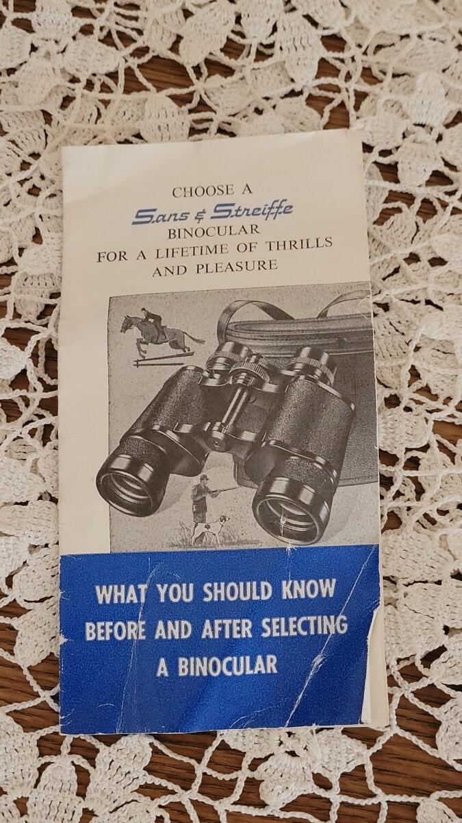 Lot 169: Vintage Sans and Streiffe Binoculars #804 with Lens Caps, Case & Book 7×50mm