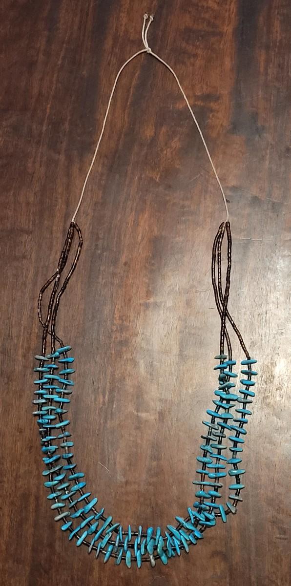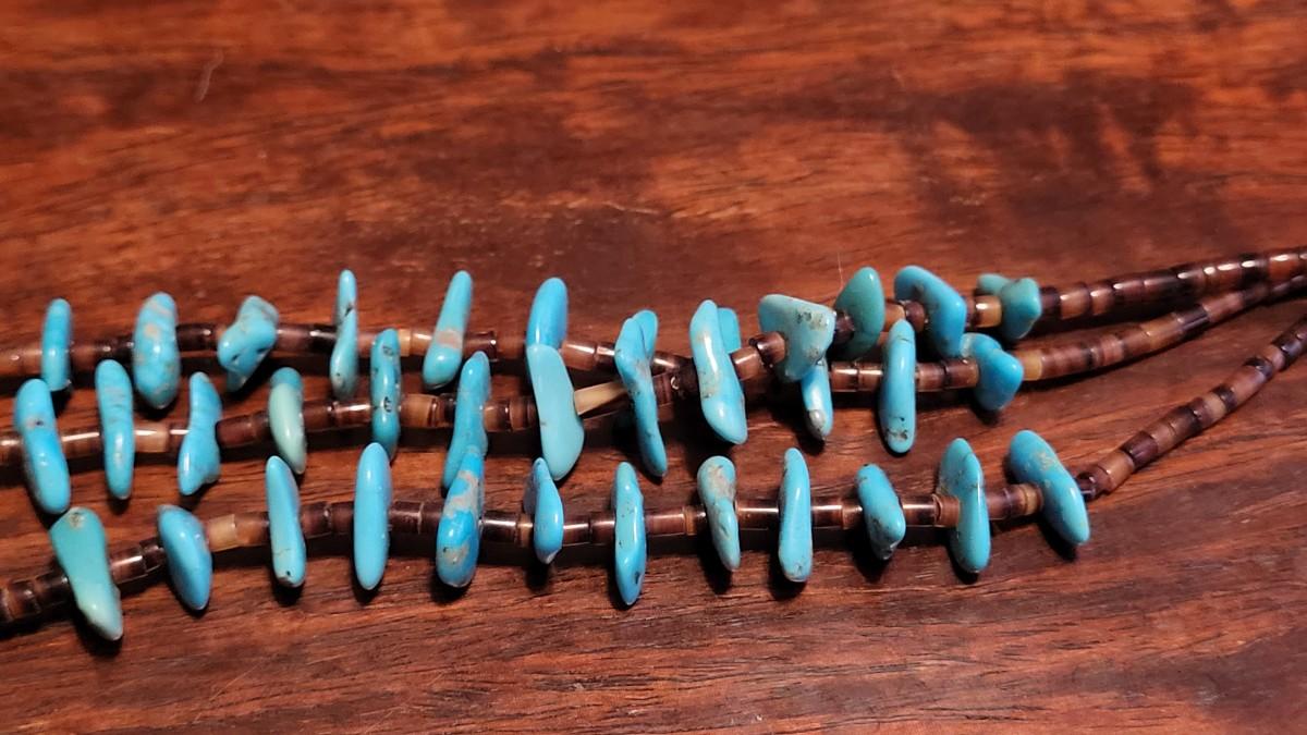 Lot 169: Old Pawn Triple Strand Santo Domingo Heishi Bead String Tied Necklace