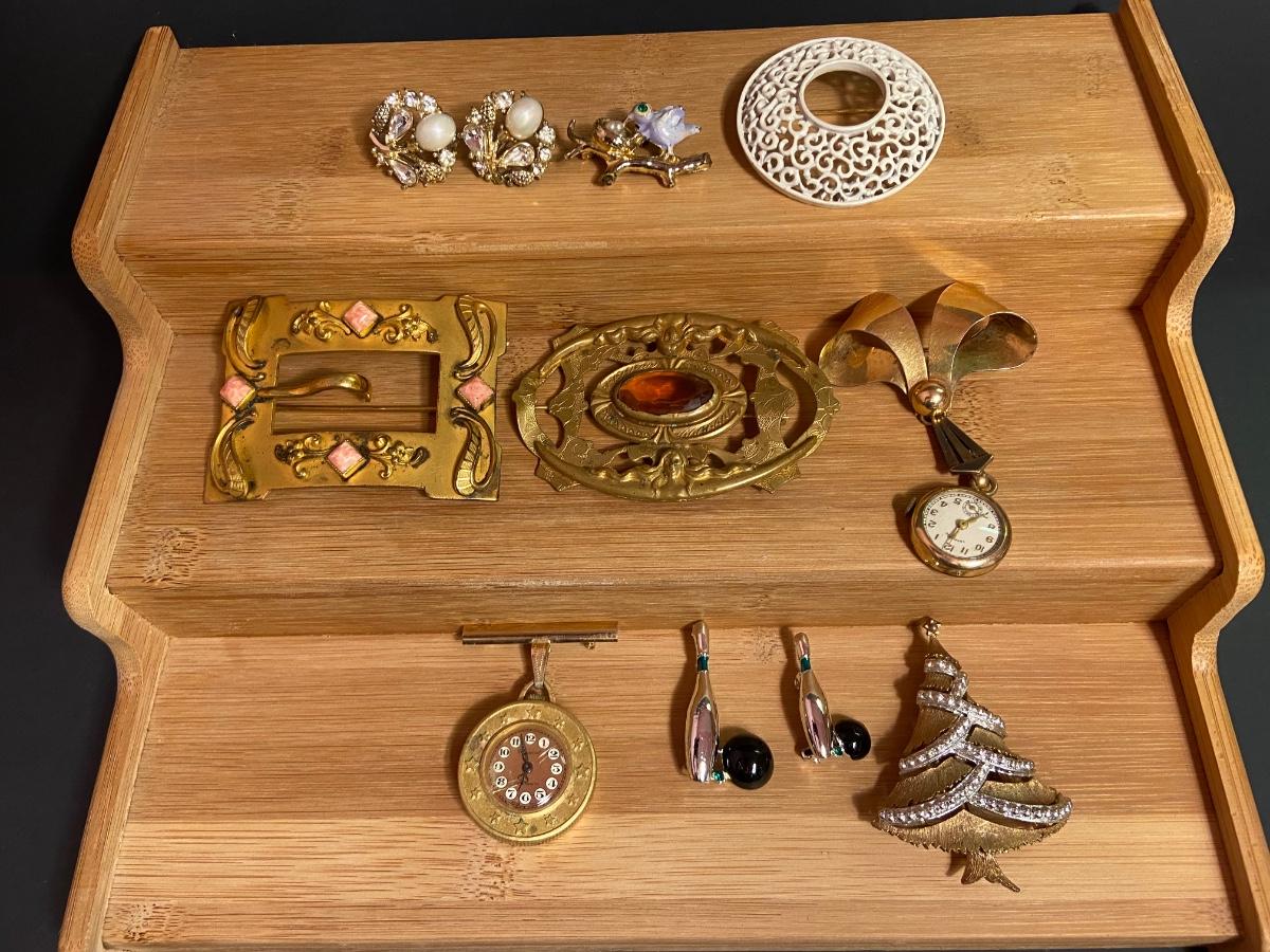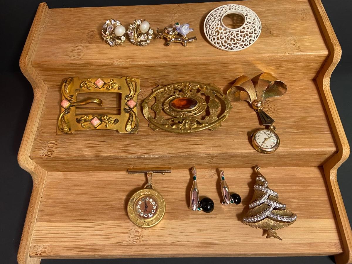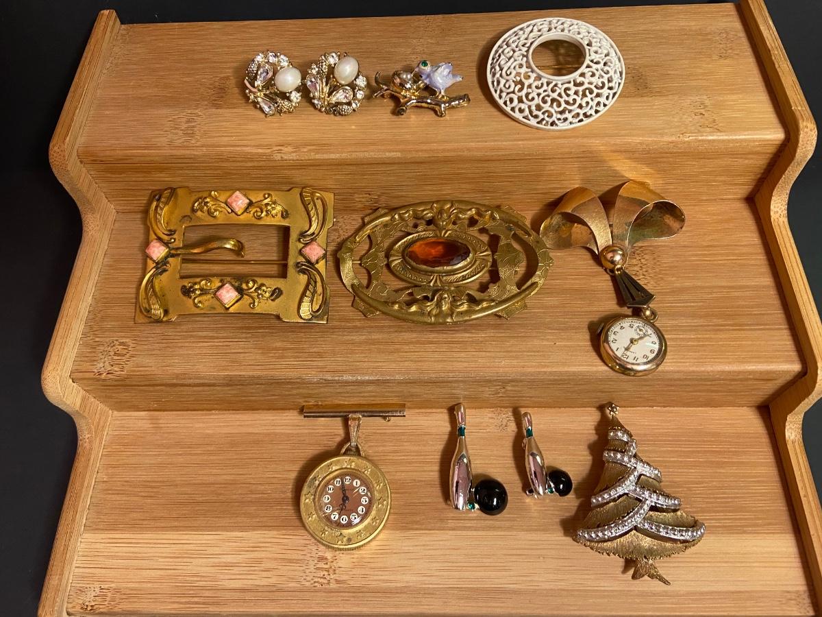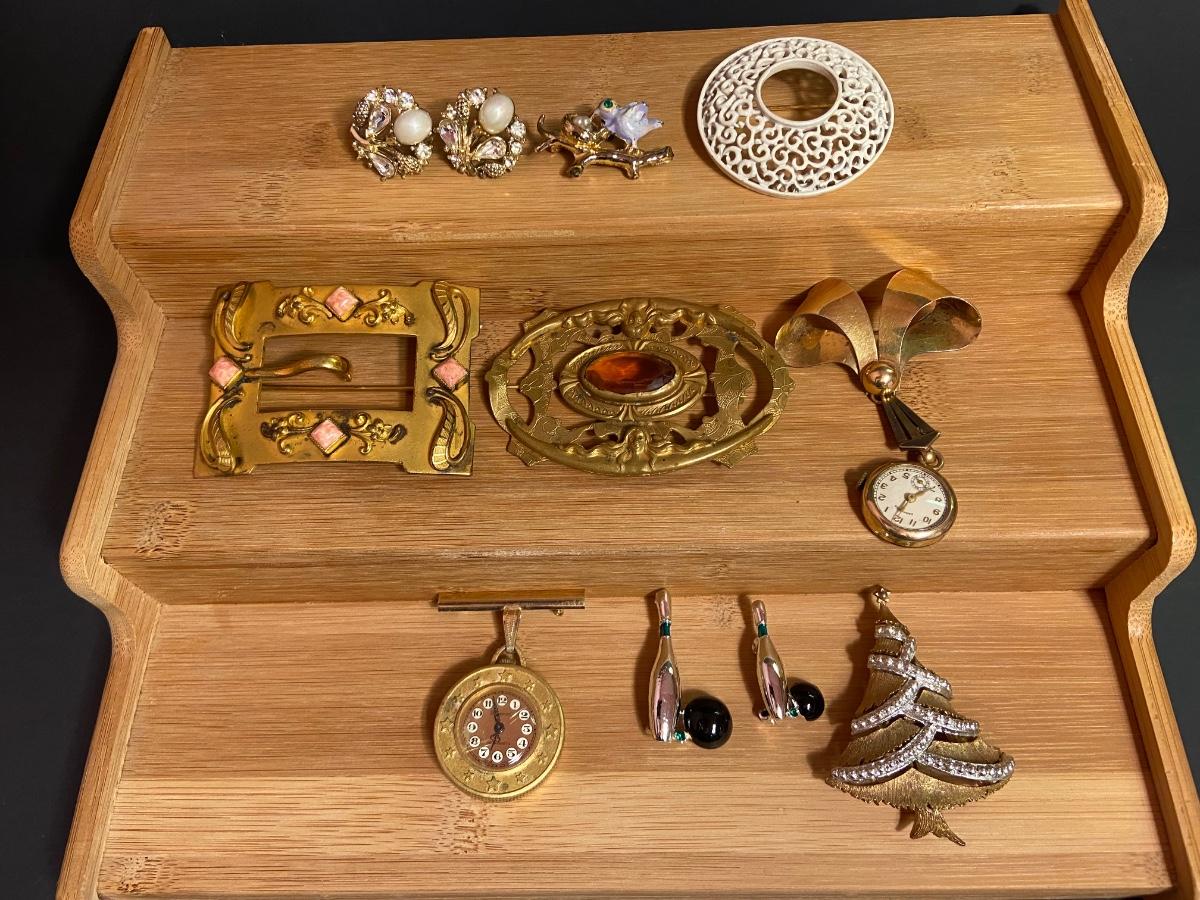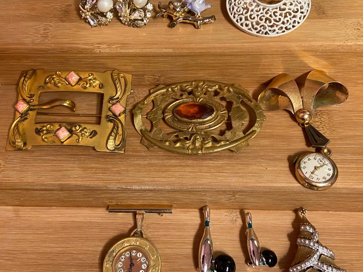 Vintage brooches, time piece and more. All pre-owned as-is.