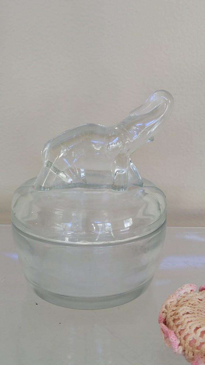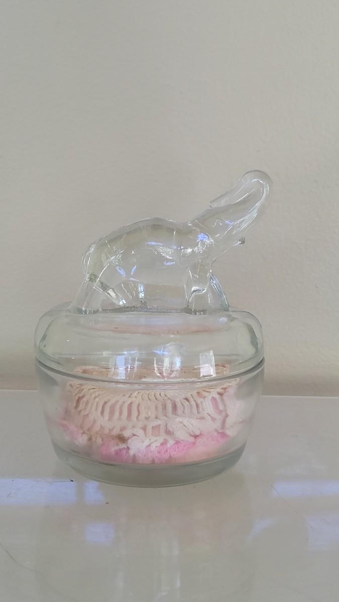 Lot 169: Vintage Jeanette Glass Elephant Trinket Box with Antique Handmade Pin Cushion