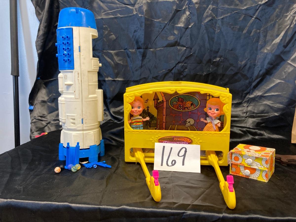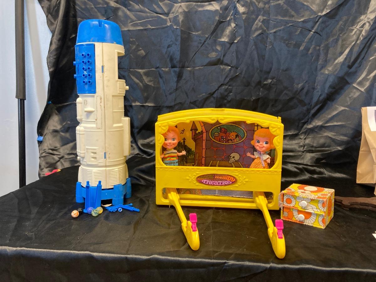 BIONIC TRANSPORT MISSING ACTION THE FIGURE, OTHER PARTS AND PIECES & DECALS BUT WOULD BE GREAT FOR PARTS OR REPAIR ON YOUR CURRENT SIX MILLION DOLLAR MAN'S SHUTTLE. TWO GREAT NOSTALGIC PIECES! A FEW MARBLES AND DRAWERED BOXES ARE JUST AN ADDED BONUS TO THIS LOT :-)