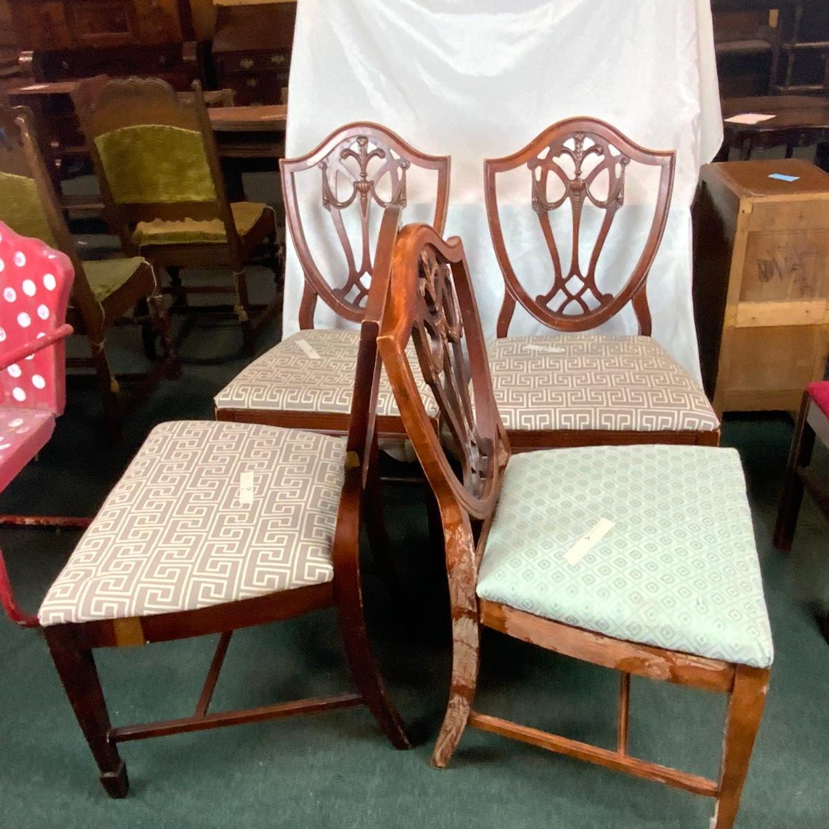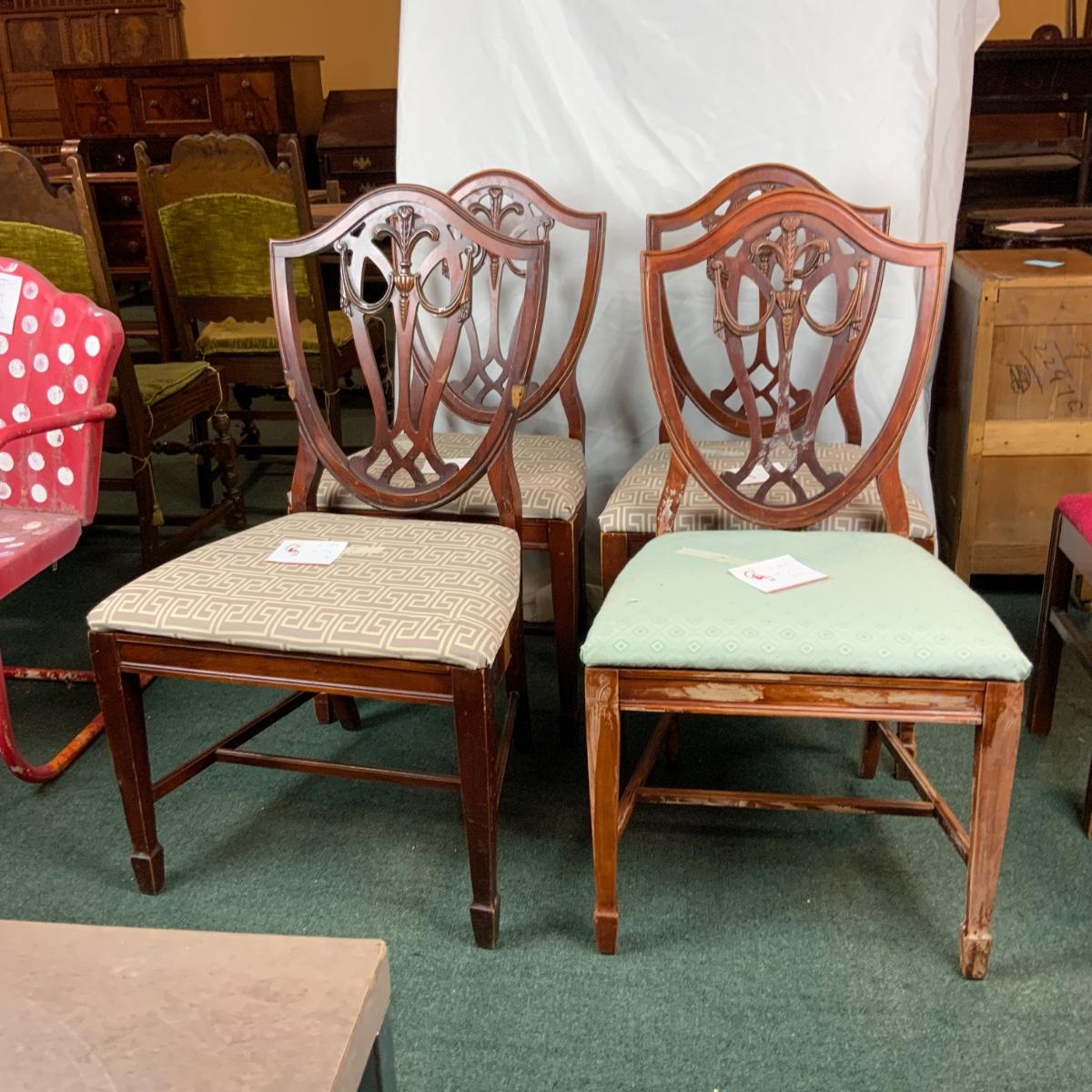 Four Dining Chairs. We couln’t pick a fabric, so now it’s your turn! //::\\ Please see photos for details and condition. No attempt has been made to hide any imperfections. All items listed in this auction are warehouse items, and need to be cleaned. A majority of the items need restoration as well. All items are sold AS IS and WITHOUT GUARANTEE. If you are uncertain about an item, DO NOT BID. Due to the nature of this online auction in-person inspection is HIGHLY recommended. All Sales are FINAL. Pick Up Times are FIRM. Please confirm with your own schedule that you can pick up in the scheduled times listed in the Terms and Conditions. Any questions please message the auctioneer. DO NOT Contact The Harp Gallery.