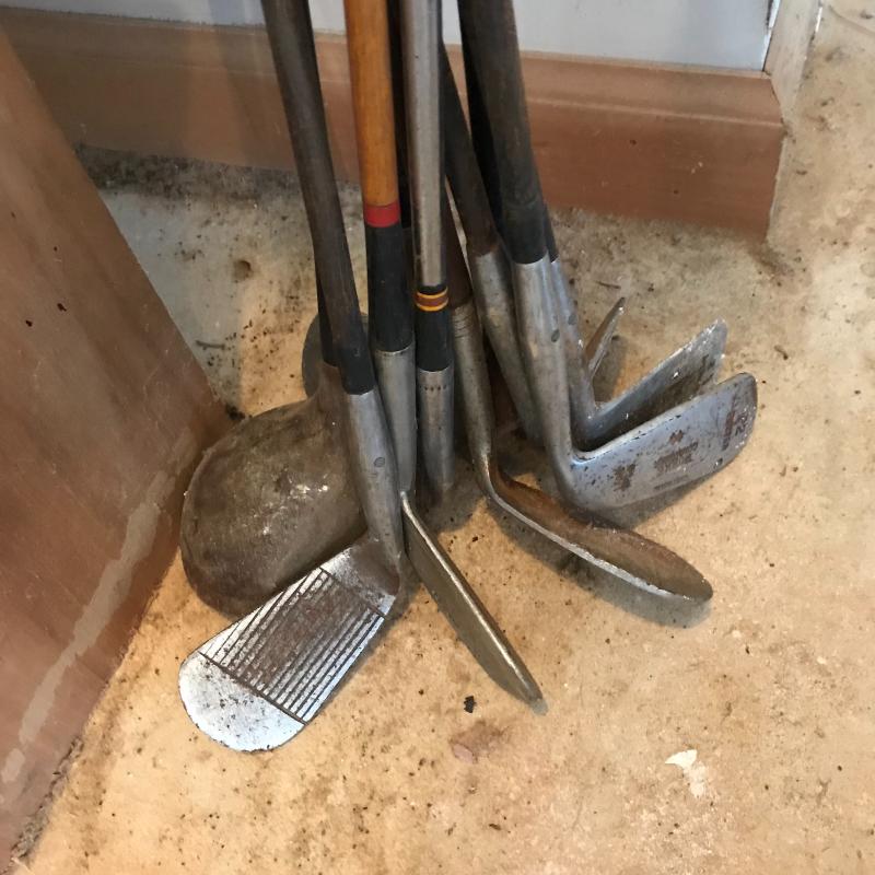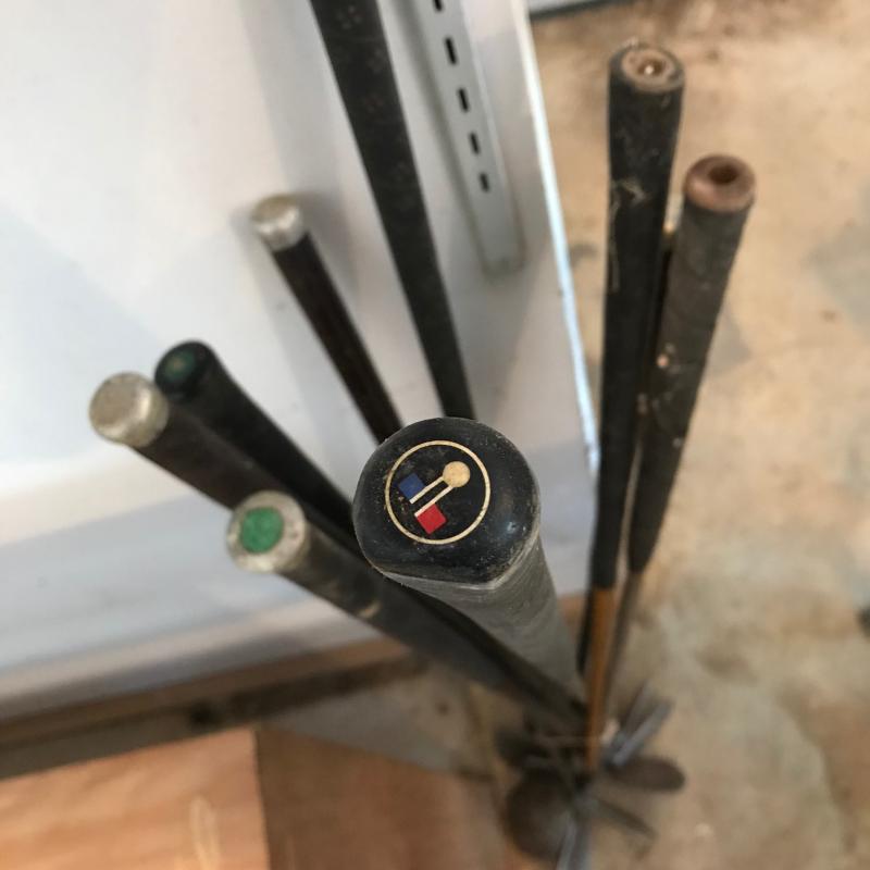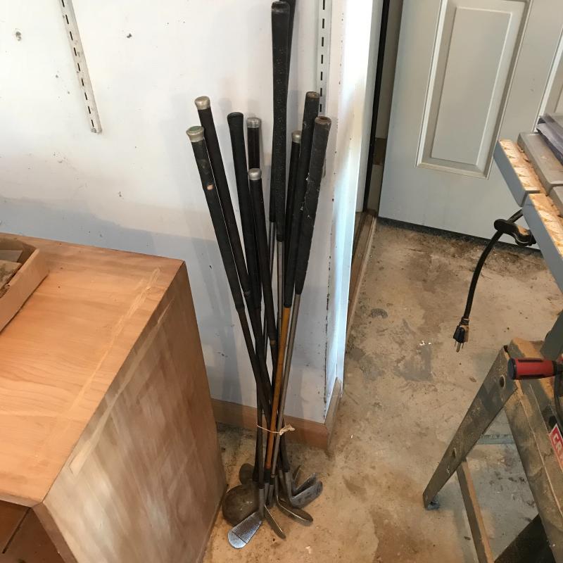 10 clubs ideal for decoration. Some wood and some metal. Lot is available for local pick up in Flat Rock, NC only.