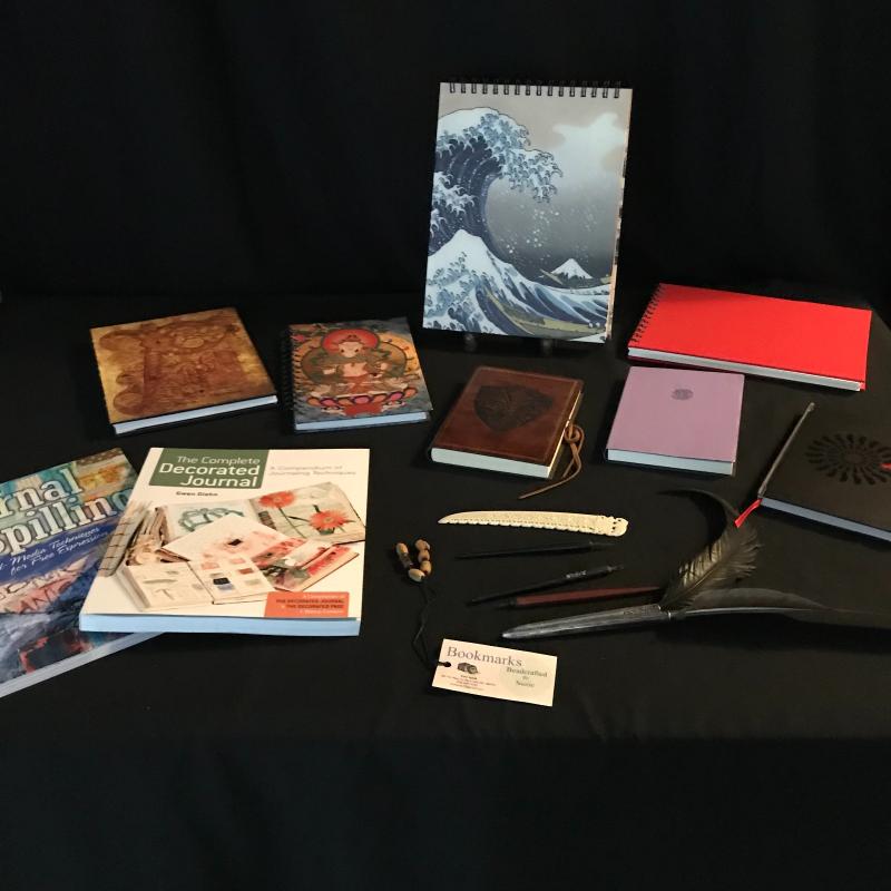 Lot includes 7 journals. Most haven’t been written in, a couple have writing on only a few pages. Also included are several quill pens, feathers and a quill pen holder. See pics. Shipping available or local pickup in Arden, NC.