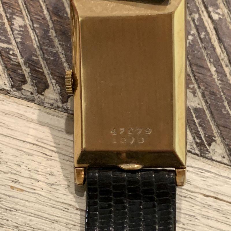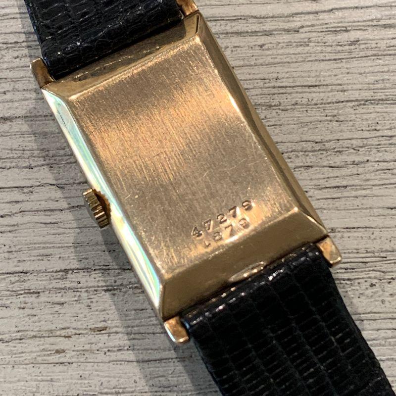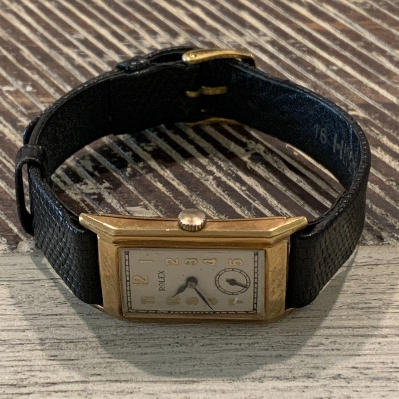 Vintage ROLEX 9K rectangle curved case. Dial has been resurfaced at one time. Needs servicing.