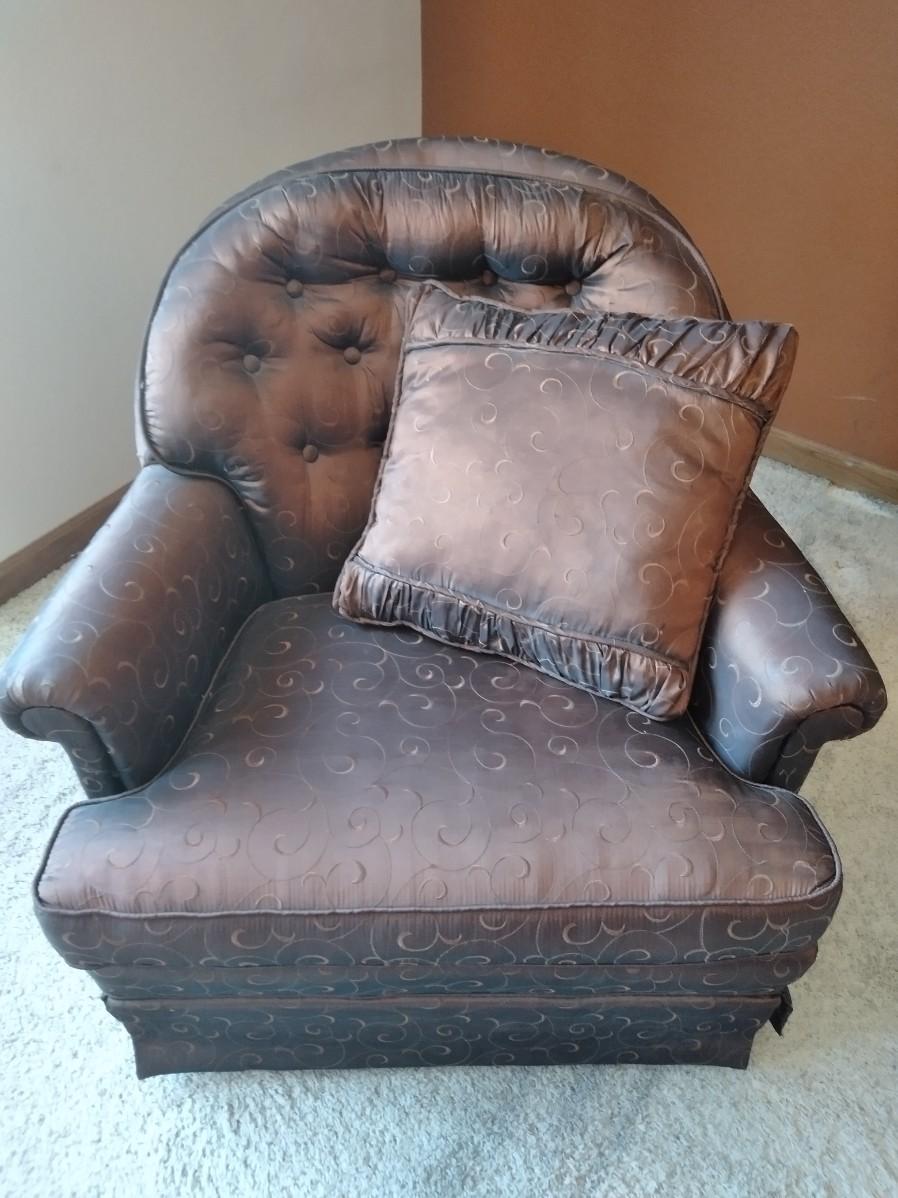 SWIVELING LIVINGROOM CHAIR WITH THROW PILLOW 31" X 33" X 33" (matches the bench in lot 168)
