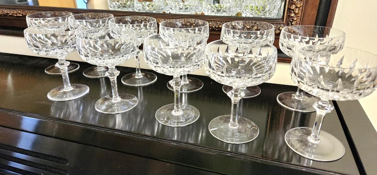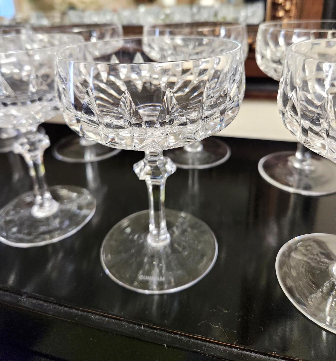 Pretty lot of 11 Gorham (marked) "La Scala" champagne glasses - each 5" tall. Good condition.