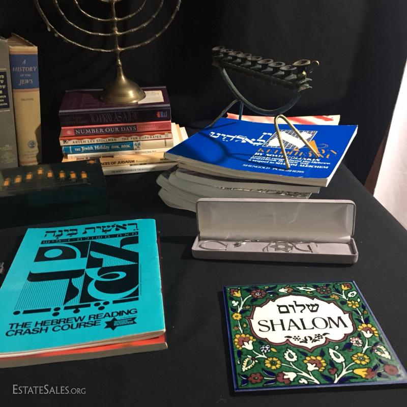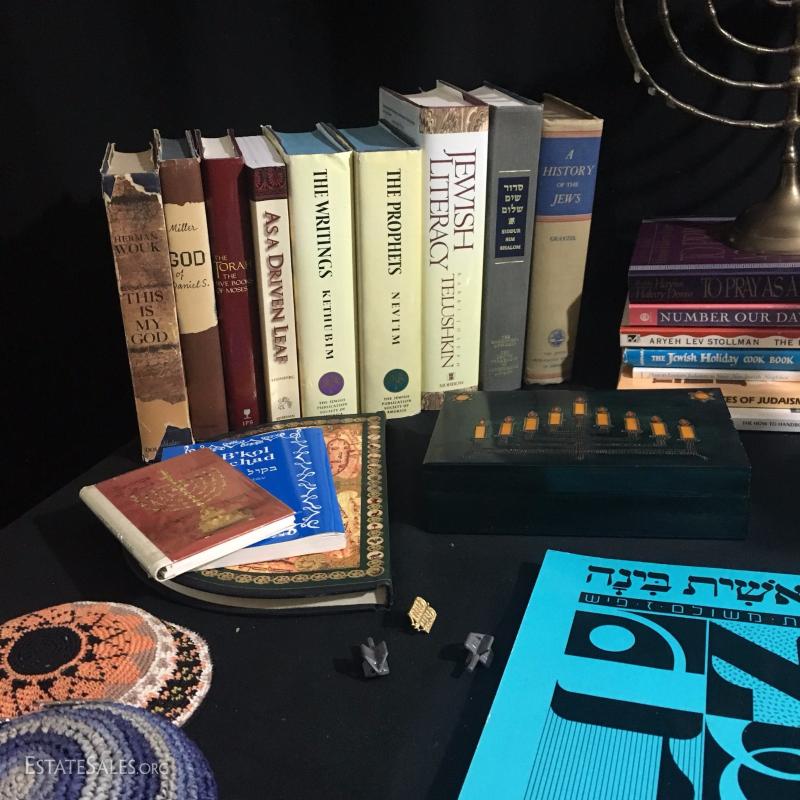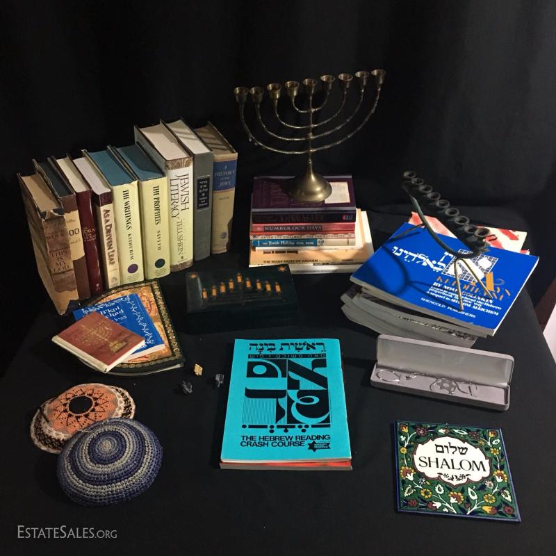 Lot 169 - Menorahs, Kippahs and Books on Judaism