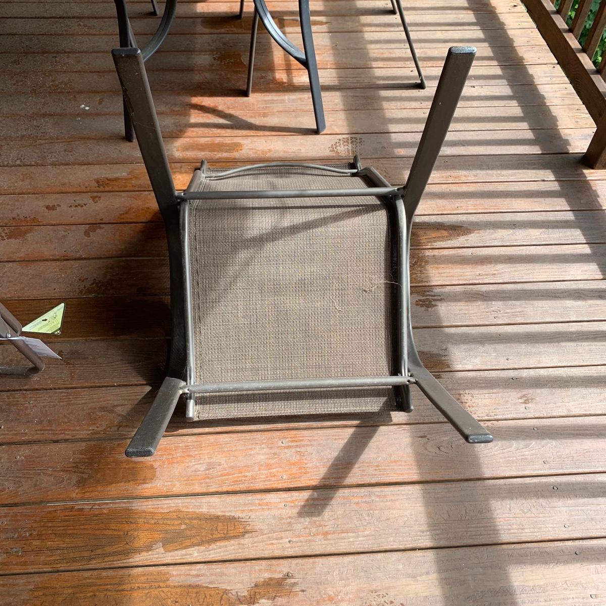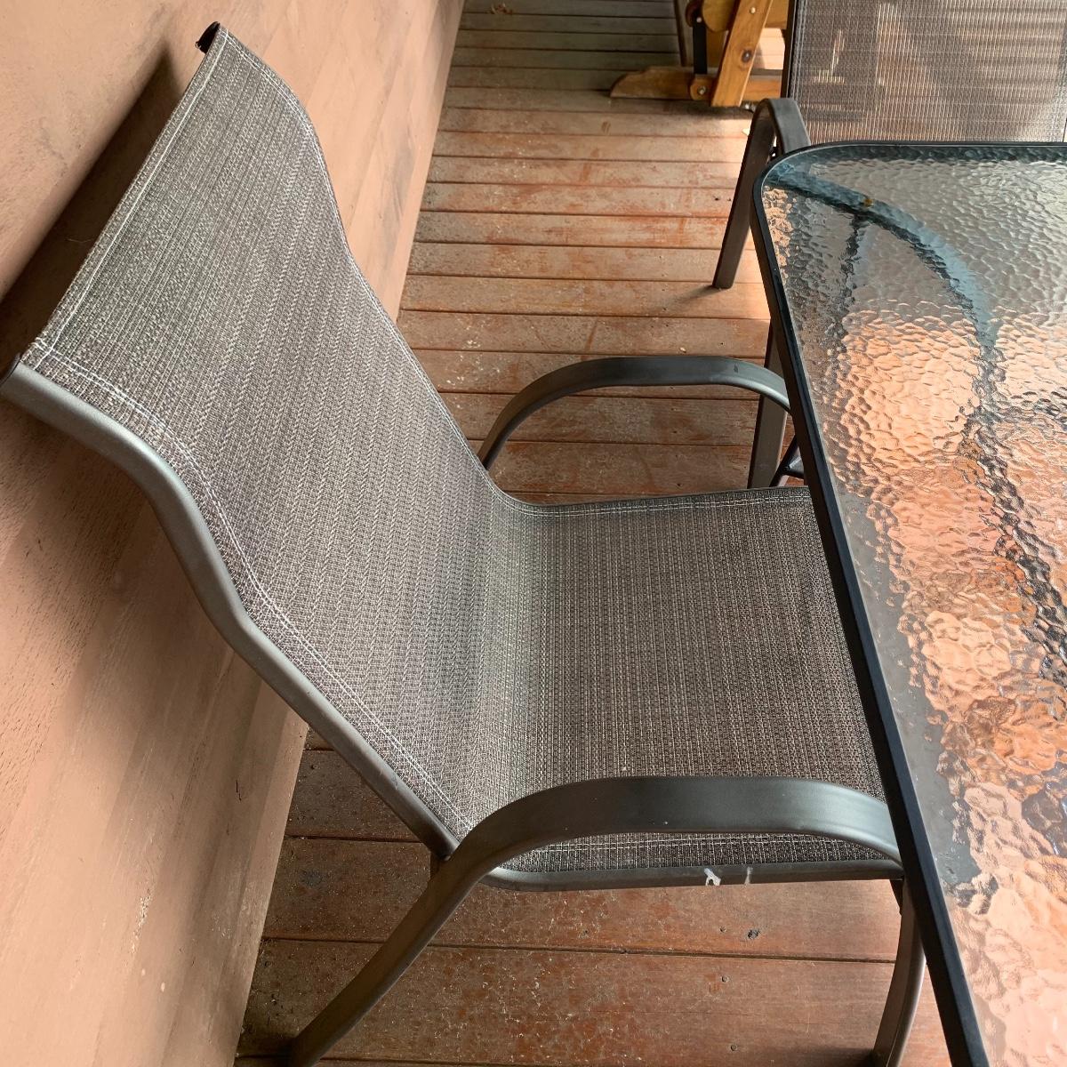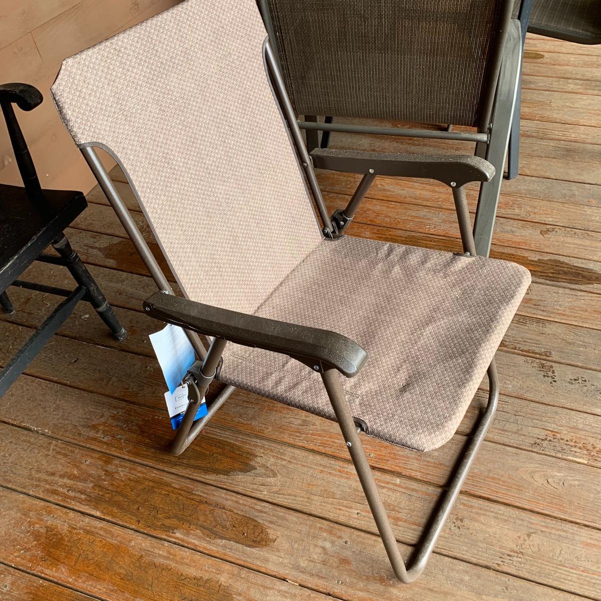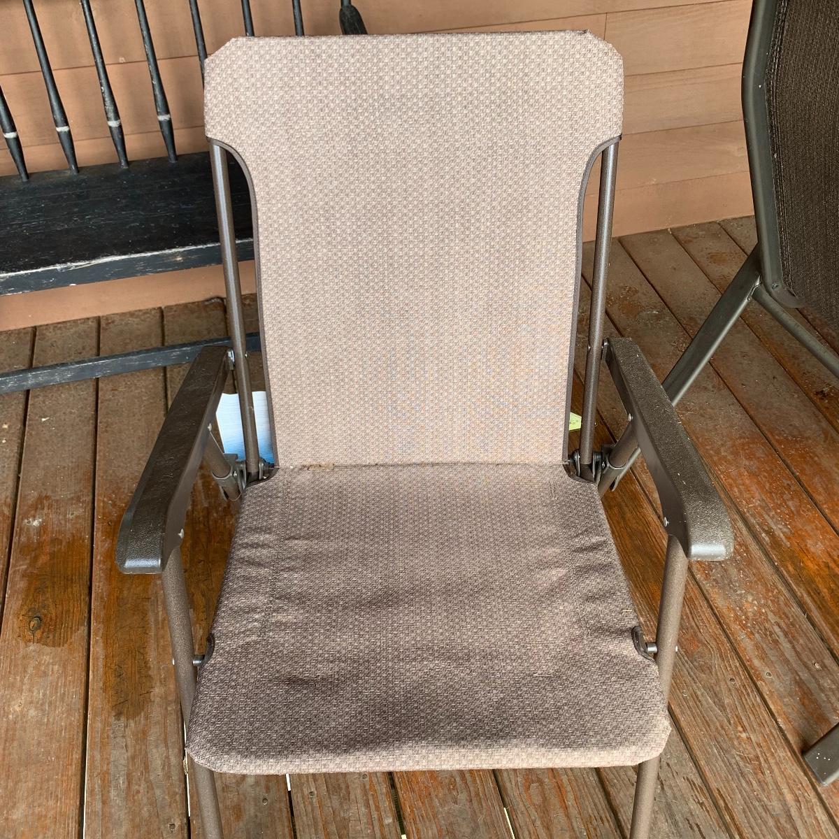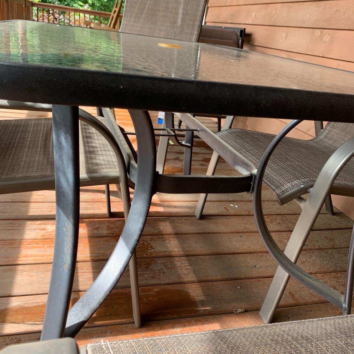 Time to replace that worn out patio furniture. The lucky winner of this lot will revive a metal table with a beautiful glass top that has an umbrella hole already drilled in the middle. This table measures 36” X 53”. The metal chairs included in this set are super comfy, and feature durable outdoor material. Four chairs are included in this set. This set also includes an extra folding chair that still has a tag on it. Local pickup only.