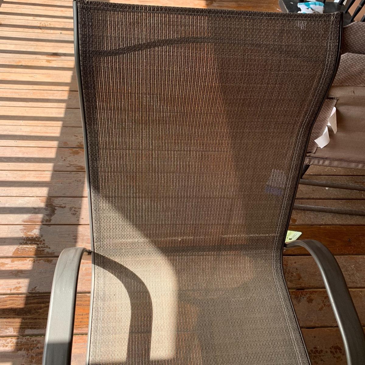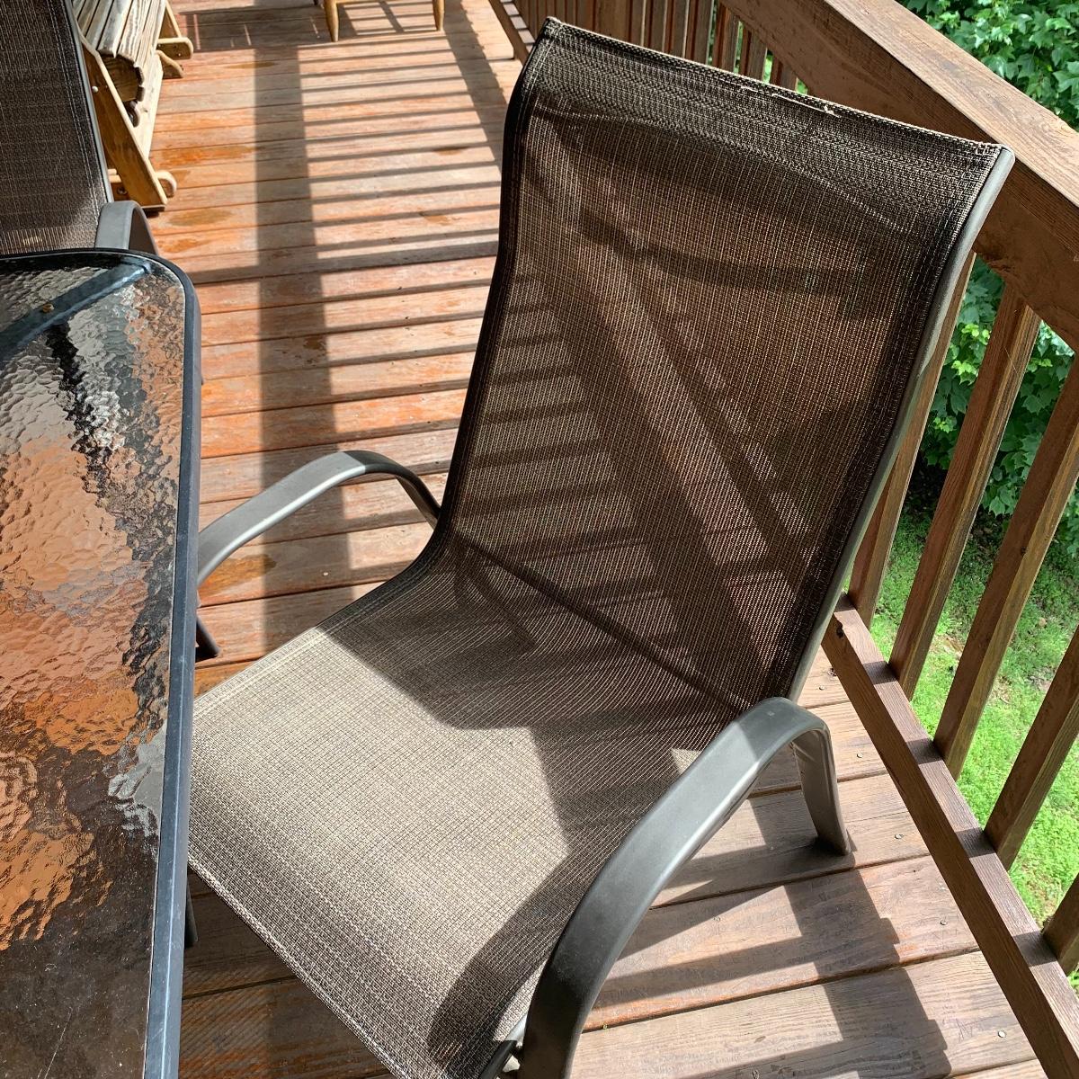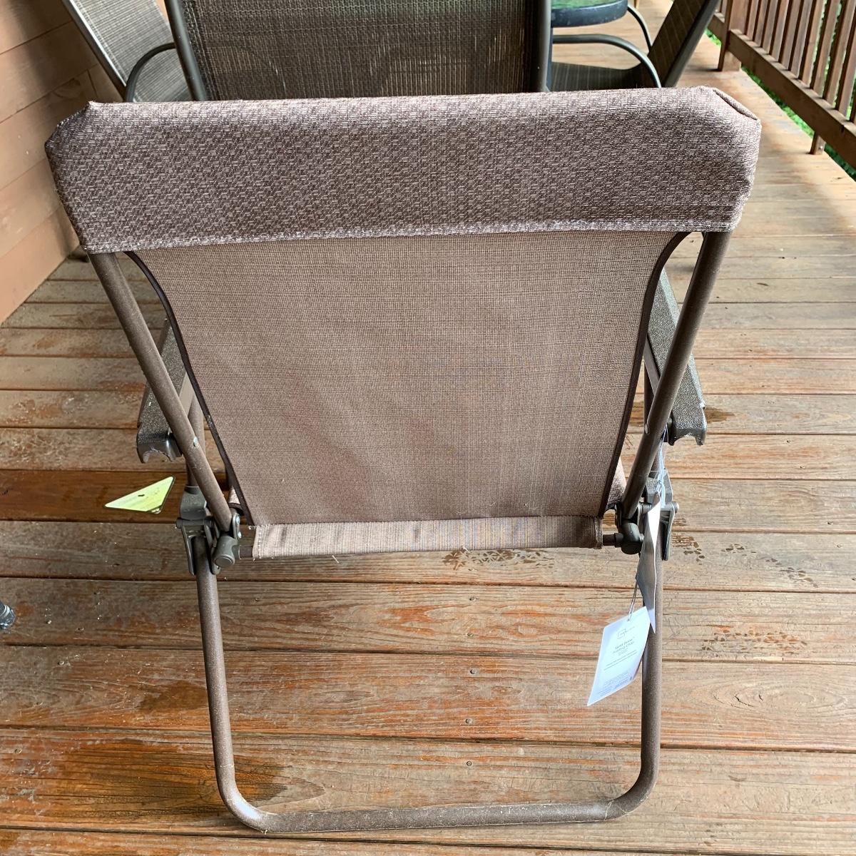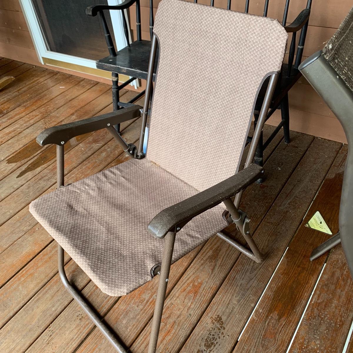 Time to replace that worn out patio furniture. The lucky winner of this lot will revive a metal table with a beautiful glass top that has an umbrella hole already drilled in the middle. This table measures 36” X 53”. The metal chairs included in this set are super comfy, and feature durable outdoor material. Four chairs are included in this set. This set also includes an extra folding chair that still has a tag on it. Local pickup only.
