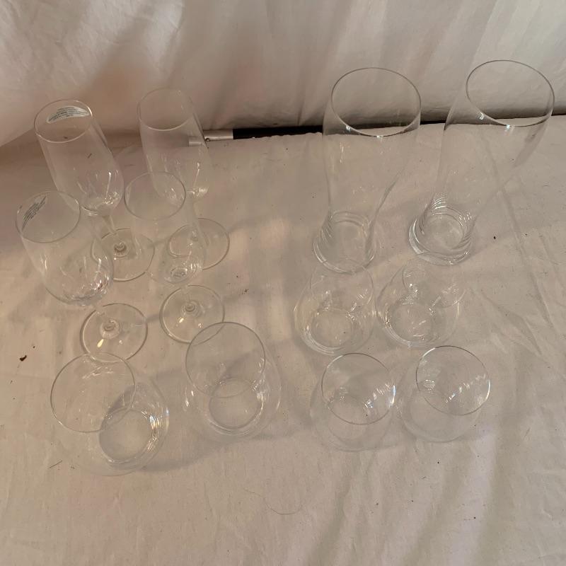 This lot includes two large Riedel beer glasses, two small Riedel wine cups, three Riedel wine glasses, and four Riedel champagne glasses. All pieces made out of Tyrol crystal. Shipping available.