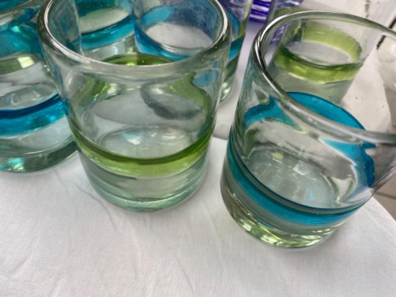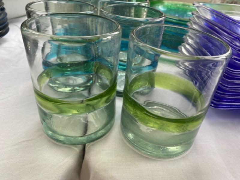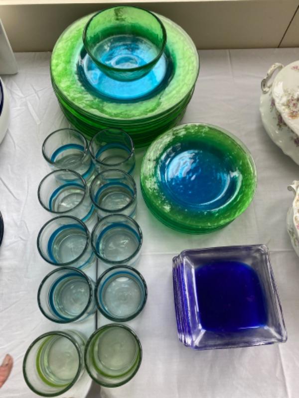 Lot # 169 Set of Hand blown Blue Green Glass set